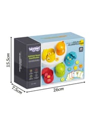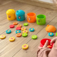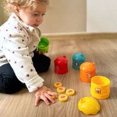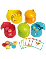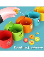 Wprowadź swoje dziecko w świat nauki i rozpoznawania kolorów z zestawem WOOPIE Gra Logiczna Sorter Nakarm Zwierzątka! Ta edukacyjna gra typu matching game (gra w dopasowywanie) jest idealna dla dzieci od 3 roku życia. Zestaw zawiera pięć kolorowych pojemników - domków uroczych zwierzątek i żetony z naklejkami pokarmów, a także aż 20 kart z zadaniami logicznymi. Głównym celem jest dopasowanie żetonów do odpowiednich domków, co rozwija rozpoznawanie barw, logiczne myślenie i koordynację ręka-oko. Domki należą do sympatycznych postaci, takich jak pingwin, pszczoła czy małpka, co dodatkowo zachęca do zabawy. To doskonały sposób na łączenie przyjemnego z pożytecznym, przygotowując malucha do nauki matematyki i rozwijając jego zdolności koncentracji.