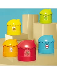 - - W zestawie 5 kolorowych pojemników/domków z uroczymi naklejkami zwierząt