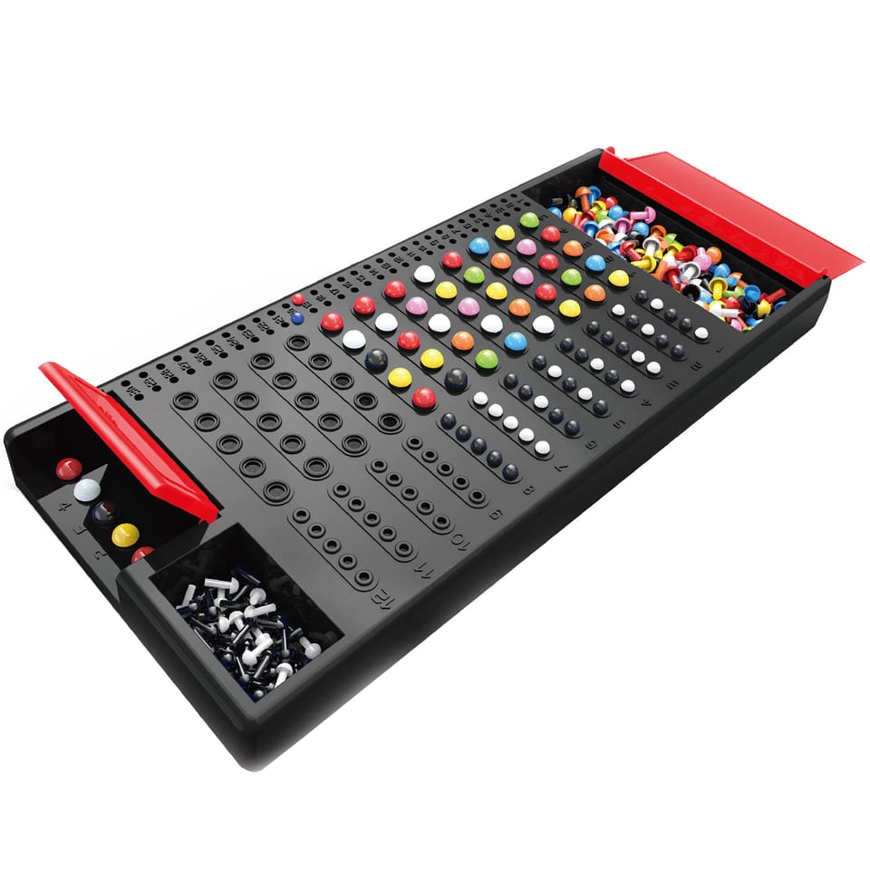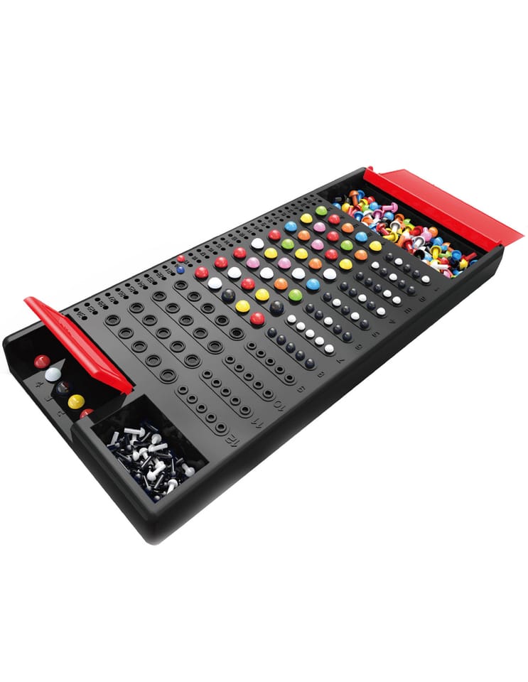 WOOPIE Gra Logiczna Łamacz Kodów została stworzona przez znaną z jakości markę Woopie. Jest to ciekawa gra logiczna polegająca na rywalizacji, w którą mogą grać jednocześnie 2 osoby. Rozgrywka zaczyna się od ustalenia kolorowego kodu. Kod gracze "zapisują" pionkami z boku planszy. Gracze próbują odgadnąć kod przeciwnika przedstawiając swoje odpowiedzi przy pomocy kolorowych pionków. "Trafione" kolory oznacza się z drugiej strony planszy białymi i czarnymi elementami. Gra rozwija logiczne myślenie, zapamiętywanie oraz naukę kolorów.