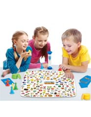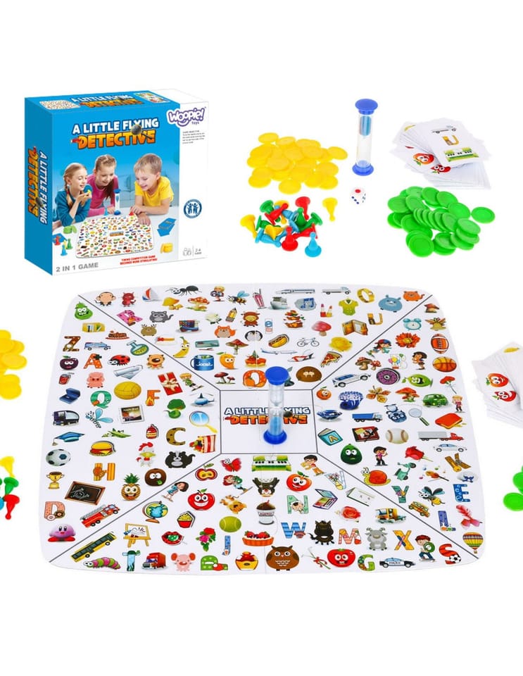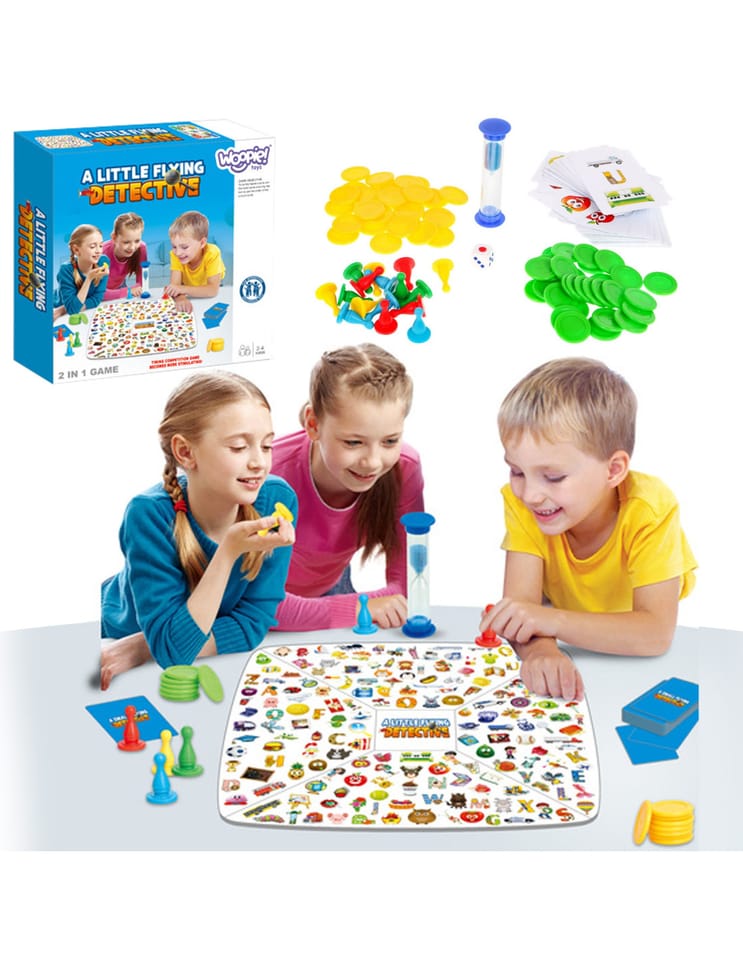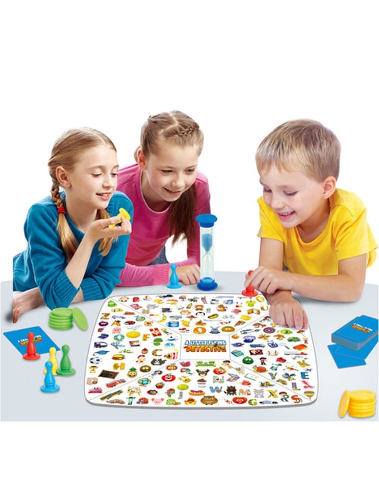 - Mały Detektyw: Przygotuj planszę, karty (wskazówki) i monety. Podziel karty w następujący sposób: dwóch graczy po 8 kart, trzech graczy po 6 kart i czterech graczy po 5 kart. Nie można podglądać kart. Każdy gracz wybiera jedną kartę. Zaczynamy od najmłodszego gracza. Odwróć swoją kartę (wskazówki) i połóż ją na środku planszy. Na karcie wskazówki pojawią się trzy wzory. Gracz powinien odnaleźć wzór jak najszybciej i zakryć go. Jeśli zostaną znalezione 3 wzory runda się kończy. Za każde dobre wskazanie wzoru gracz dostanie monetę detektywa. Jeśli zaś zaznaczy źle wzór musi oddać monetę. Klepsydra służy do pomiaru czasu, jak czas upłynie runda kończy się.Drugi sposób gry - rozdaj wszystkie monety graczom. Zacznijcie w jednym momencie szukać. Gracz który odnajdzie najwięcej wzorów wygrywa.