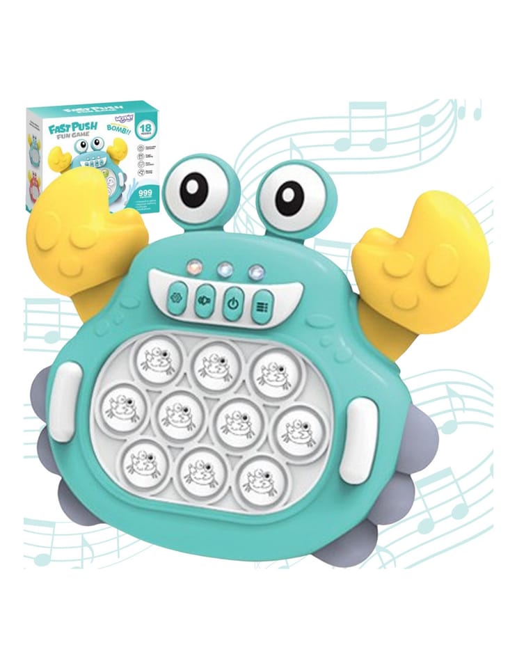 Gra POP IT Krab to zabawka antystresowa, która sprawdzi się już dla najmłodszych. Gra wydaje radosne dźwięki, które zachęcają dzieci do zabawy i urozmaicają rozgrywkę. Zabawka jest niewielka więc, sprawia, że możemy zabrać ją ze sobą. Pop It sprawia frajdę dzieciom oraz dorosłym, którzy chętnie po nią sięgają. Rozwija umysł, zdolności manualne, koordynację wzrokowo-ruchową oraz trenuje spostrzegawczość i pomaga w walce ze stresem.
