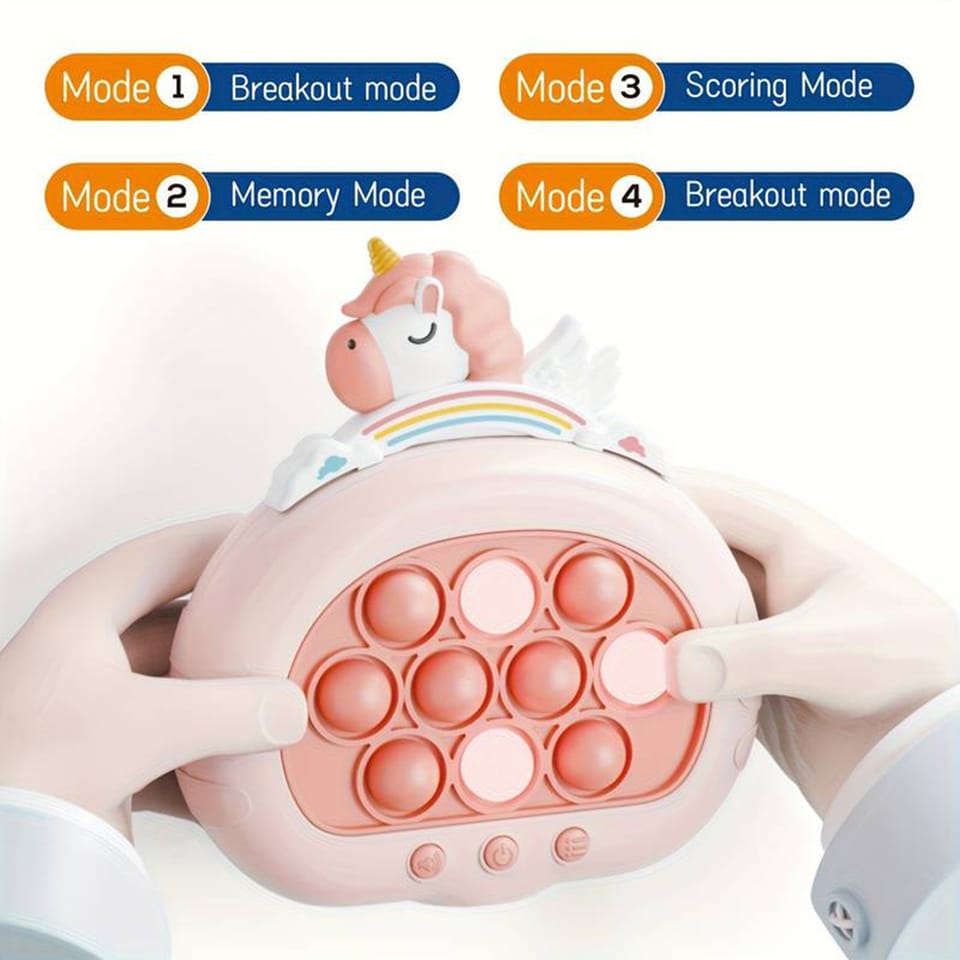 Gra POP IT Jednorożec interaktywna,interaktywne,zręcznościowa,gra,gry,woopie,antystresowa,antystresowe,game,zręcznościowe,wciskanieto zabawka antystresowa, która sprawdzi się już dla najmłodszych. Gra wydaje radosne dźwięki, które zachęcają dzieci do zabawy i urozmaicają rozgrywkę. Zabawka jest niewielka więc, sprawia, że możemy zabrać ją ze sobą. Pop It sprawia frajdę dzieciom oraz dorosłym, którzy chętnie po nią sięgają. Rozwija umysł, zdolności manualne, koordynację wzrokowo-ruchową oraz trenuje spostrzegawczość i pomaga w walce ze stresem.
