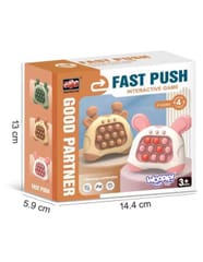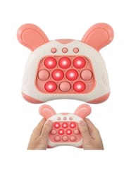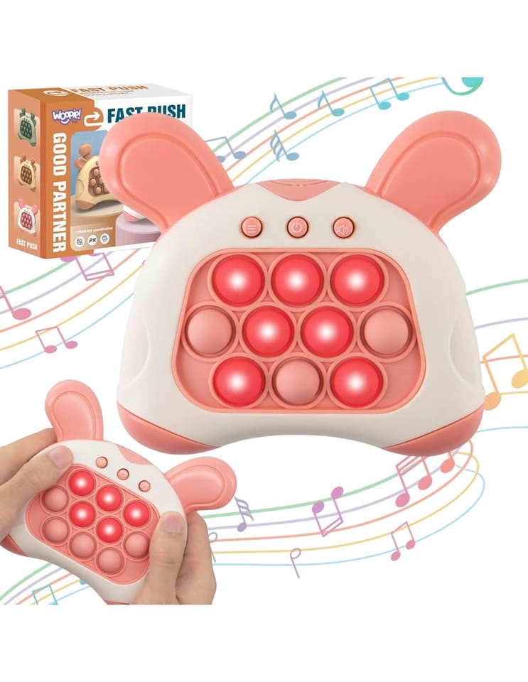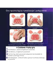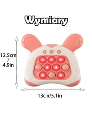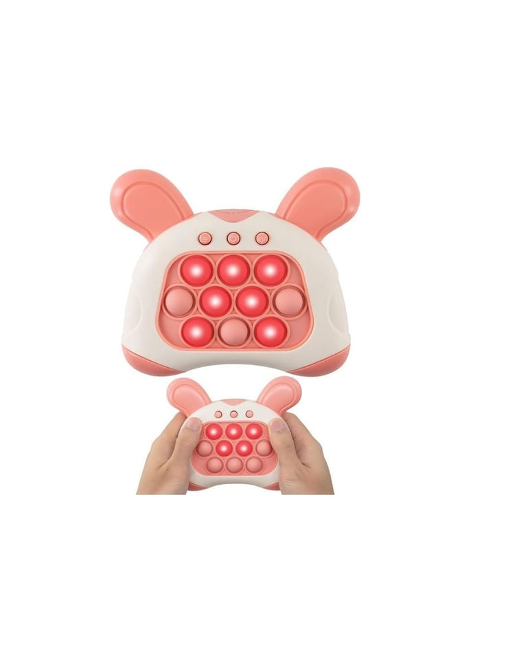 Gra POP IT Uszy Króliczka to interaktywna i antystresowa zabawka, która idealnie sprawdzi się dla najmłodszych. Urządzenie wydaje radosne dźwięki, zachęcając dzieci do ciągłej zabawy i urozmaicając rozgrywkę. Zabawka posiada kompaktowe wymiary, co sprawia, że można ją zabrać ze sobą w każdą podróż. Sensoryczna gra przynosi ogromną frajdę zarówno dzieciom, jak i dorosłym, którzy chętnie po nią sięgają. Zabawa aktywnie rozwija umysł, zdolności manualne, koordynację wzrokowo-ruchową, trenuje spostrzegawczość i skutecznie pomaga w walce ze stresem. Interaktywna zabawka posiada aż 4 różne tryby gry: Pamięciowy (zapamiętywanie i odtwarzanie sekwencji świecących się bąbelków), Punktacji (zdobywanie punktów poprzez szybkie wciskanie bąbelków), Wieloosobowy (umożliwiający rywalizację z innymi graczami) oraz Tryb Breakout (zawierający 30 poziomów, w których liczy się znakomity refleks).