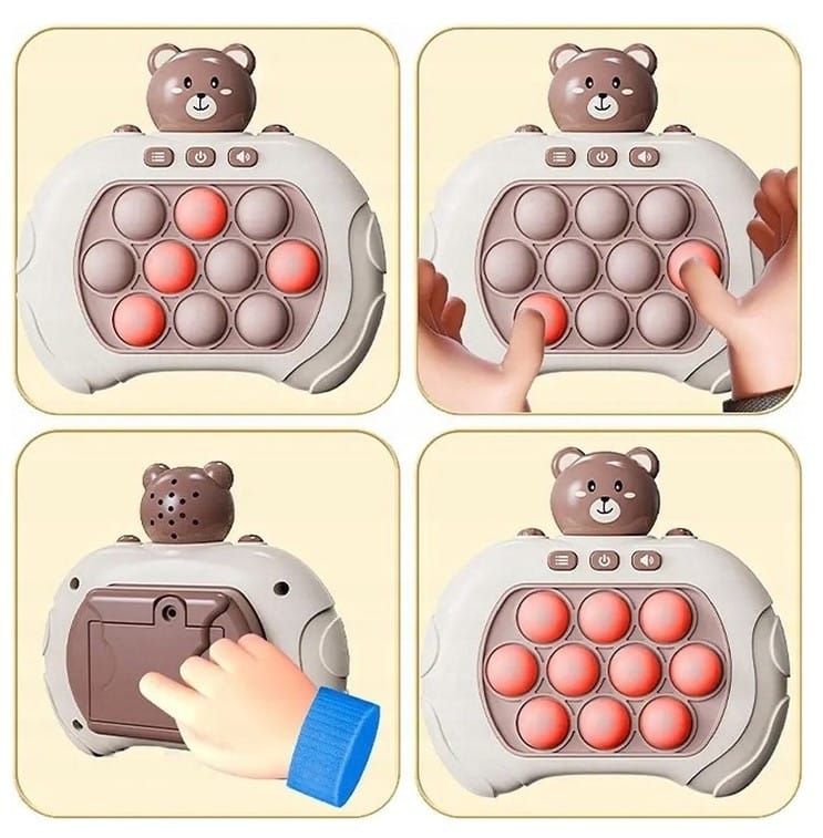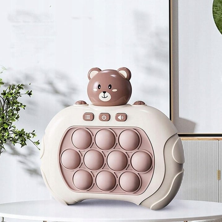 Gra POP IT Miś to zabawka antystresowa, która sprawdzi się już dla najmłodszych. Gra wydaje radosne dźwięki, które zachęcają dzieci do zabawy i urozmaicają rozgrywkę. Zabawka jest niewielka więc, sprawia, że możemy zabrać ją ze sobą. Pop It sprawia frajdę dzieciom oraz dorosłym, którzy chętnie po nią sięgają. Rozwija umysł, zdolności manualne, koordynację wzrokowo-ruchową oraz trenuje spostrzegawczość i pomaga w walce ze stresem.
