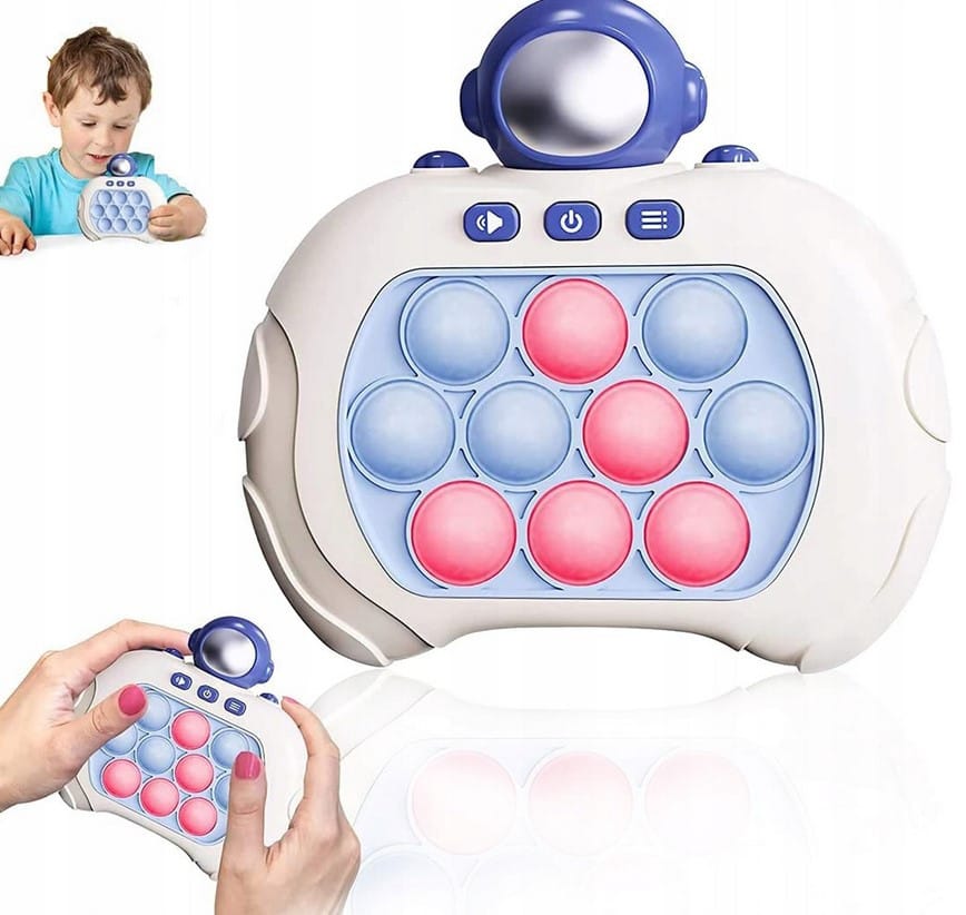 Gra POP IT Astronauta to zabawka antystresowa, która sprawdzi się już dla najmłodszych. Gra wydaje radosne dźwięki, które zachęcają dzieci do zabawy i urozmaicają rozgrywkę. Zabawka jest niewielka więc, sprawia, że możemy zabrać ją ze sobą. Pop It sprawia frajdę dzieciom oraz dorosłym, którzy chętnie po nią sięgają. Rozwija umysł, zdolności manualne, koordynację wzrokowo-ruchową oraz trenuje spostrzegawczość i pomaga w walce ze stresem.