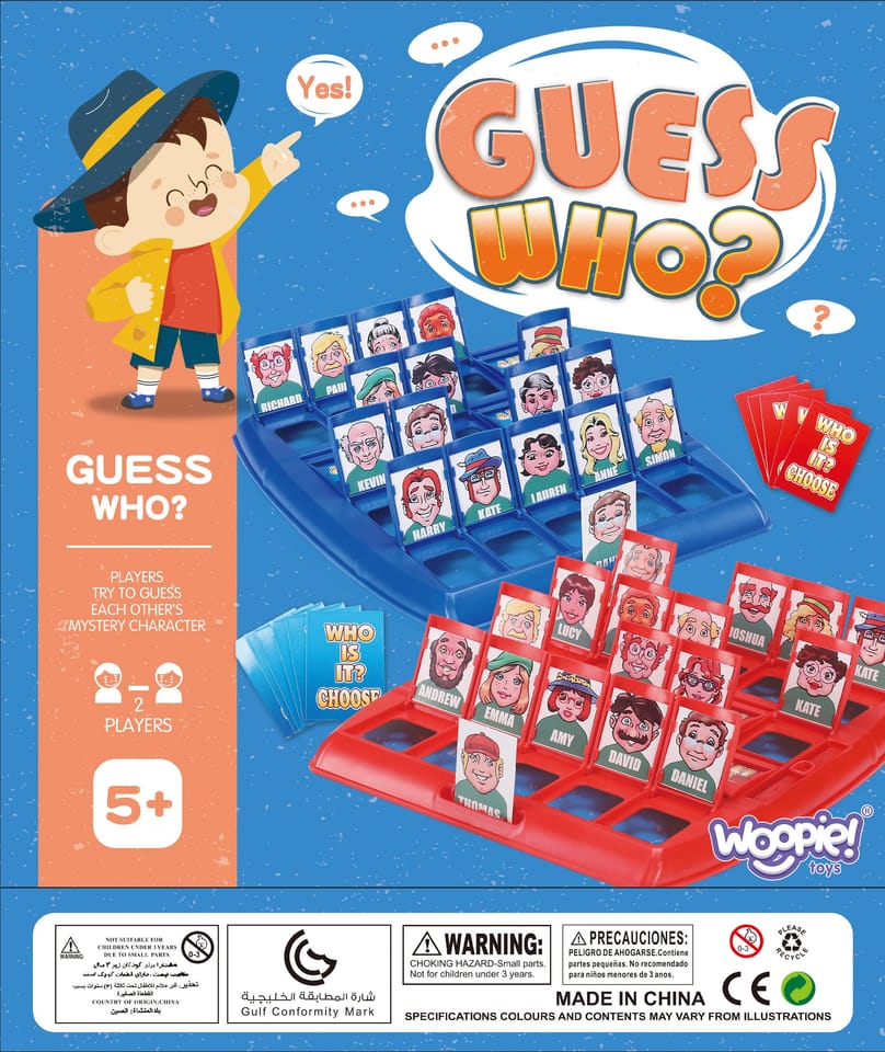 Zasady gry:Zgadnij pierwszy kto jest na karcie wybranej przez przeciwnika.Zanim zaczniesz grę po raz pierwszy rozłóż karty i przyjrzyj się wszystkim postaciom zwracając uwagę na szczegóły takie jak: kształt nosa, fryzura, grymas.