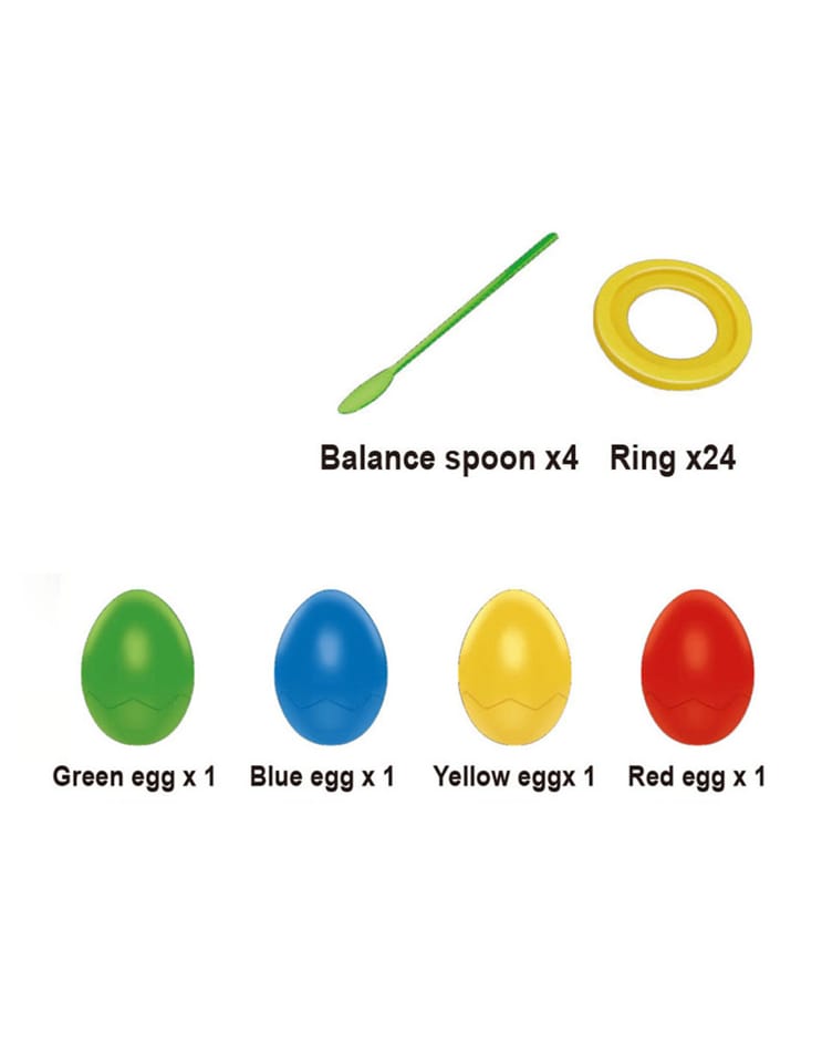 - - zestaw zawiera kolorowe jajka, kolorowe pałeczki, pierścienie,
