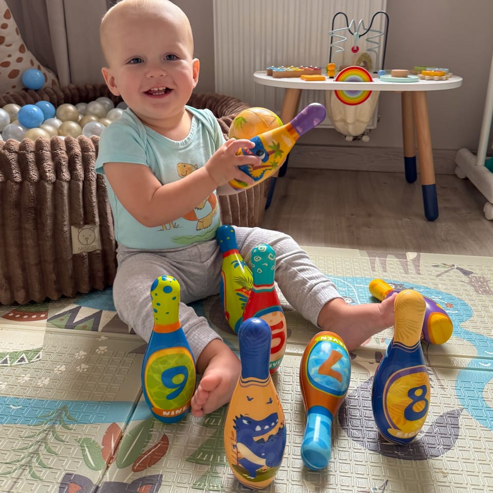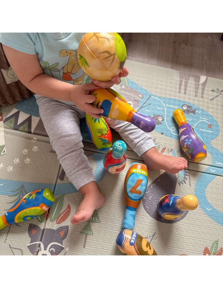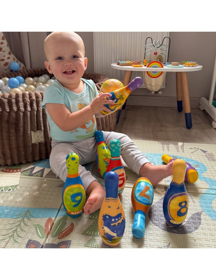 - - Miękkie kręgle z pianki SOFT z atrakcyjnymi, kolorowymi motywami dinozaurów