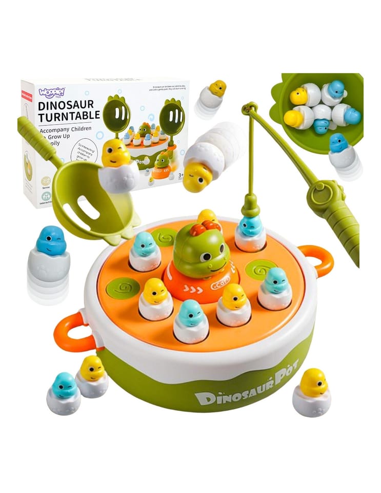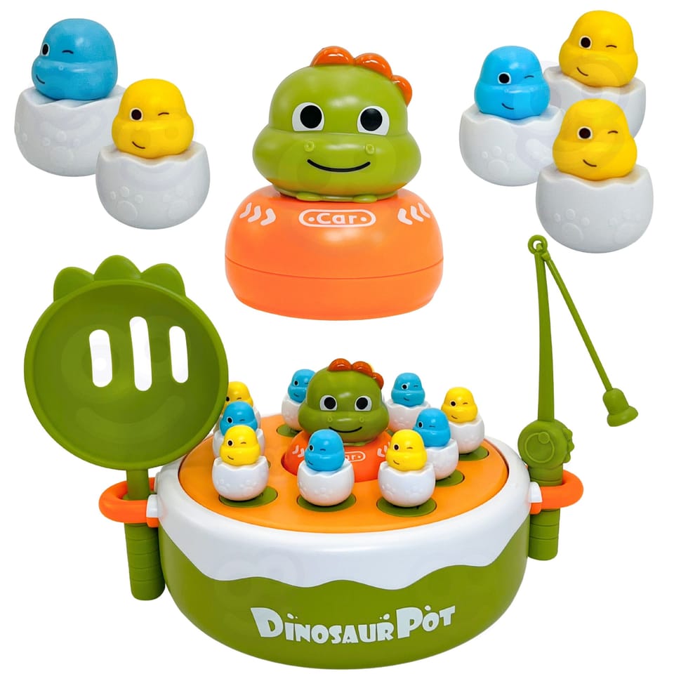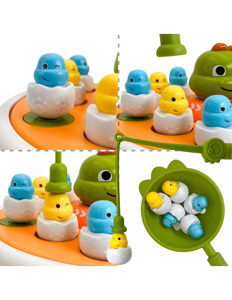 - - 4w1 : 1. Klasyczne Łowienie Dinozaurów Wędką Magnetyczną2. Katapulta i Łowienie Łopatką3. Kółko i Krzyżyk4. Dinozaur-Autko