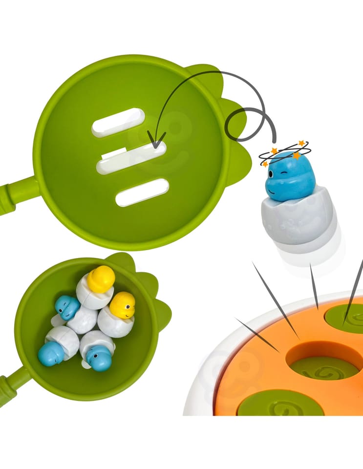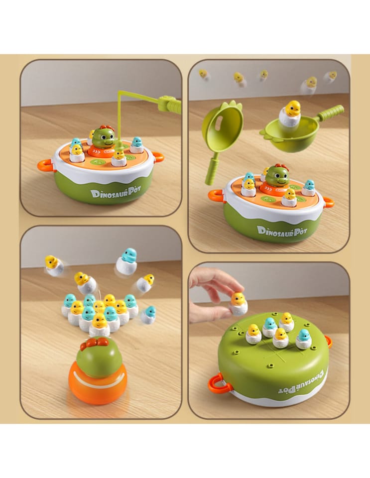 - - Łączy w sobie magnetyczną grę w łowienie oraz ekscytującą zabawę w katapultowanie uroczych dinozaurów