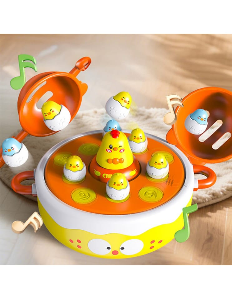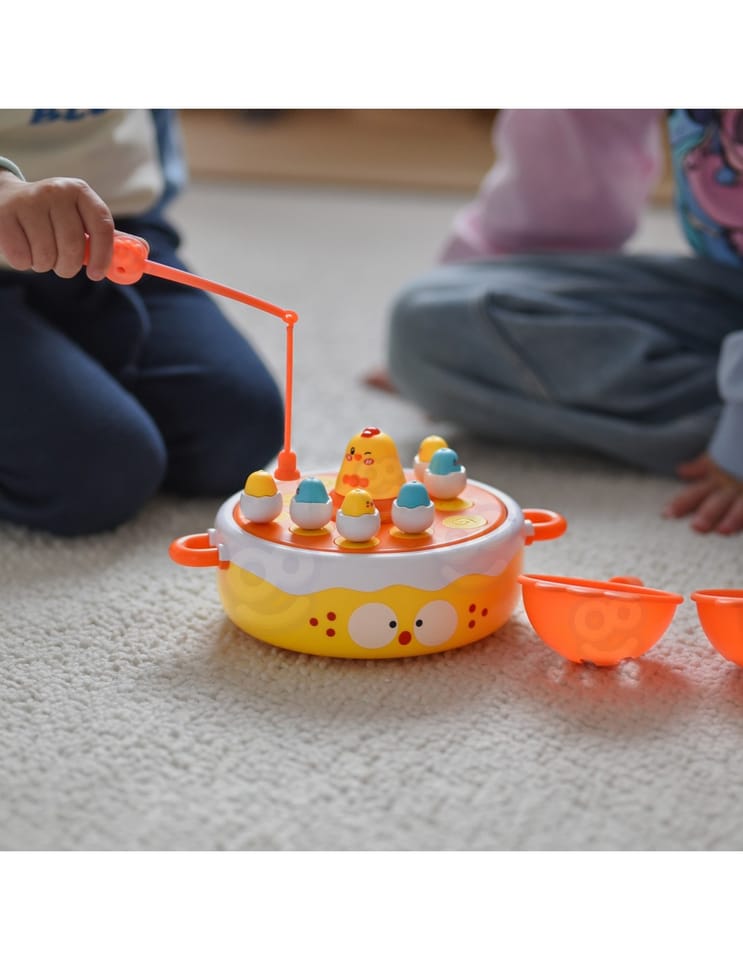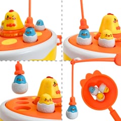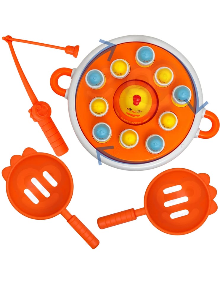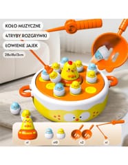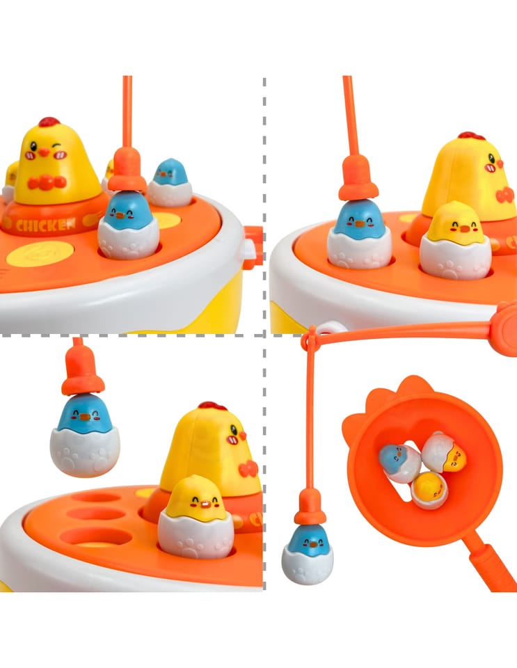 - - Łowienie piskląt wędką, katapulta do strzelania jajkami, obrotowy dysk muzyczny, i kurczak-samochodzik