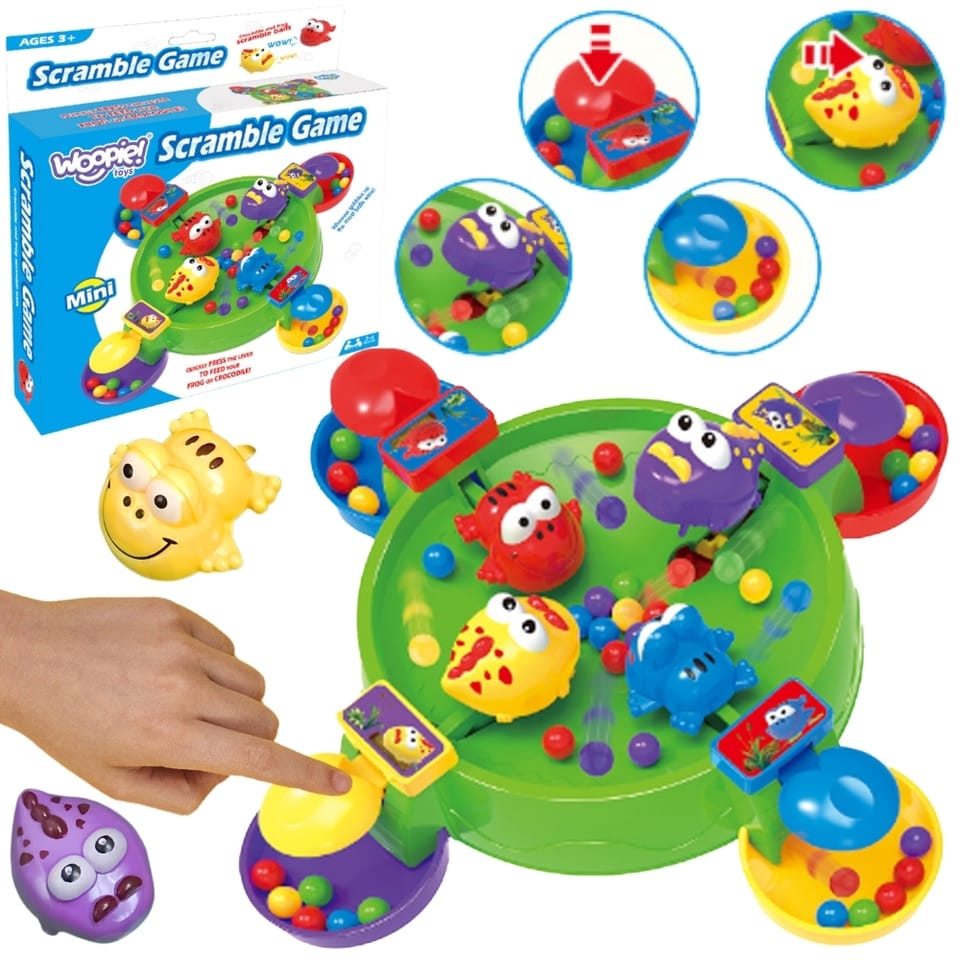 Gra zręcznościowa Głodne Żabki od marki Woopie to kolorowa, dynamiczna gra dla dzieci, która rozwija zdolności manualne, refleks oraz koordynację wzrokowo-ruchową. Proste zasady, dynamiczna rozgrywka i kolorowe wykonanie sprawiają, że nie sposób się od niej oderwać! Celem gry jest nakarmić swoją postać jak największą liczbą kolorowych kulek. Każdy gracz ma swoją figurkę, którą steruje za pomocą specjalnego przycisku. Po naciśnięciu przycisk uruchamia mechanizm, który „zjada” kulki. Szybkość i refleks to klucz do zwycięstwa! Wygrywa ten, kto zgromadzi najwięcej kulek w swoim pojemniczku. Gra może być rozgrywana w pojedynkę, w duecie a maksymalnie w gronie 4 osób — idealna do wspólnej zabawy z rodzeństwem, rodzicami czy przyjaciółmi. To idealna gra rodzinna lub towarzyska, która zapewni dzieciom wiele śmiechu i emocji z rywalizacji.