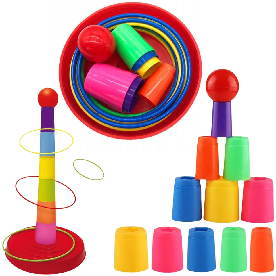 - - Żywe barwy słupków i obręczy przyciągają uwagę i zachęcają do gry
