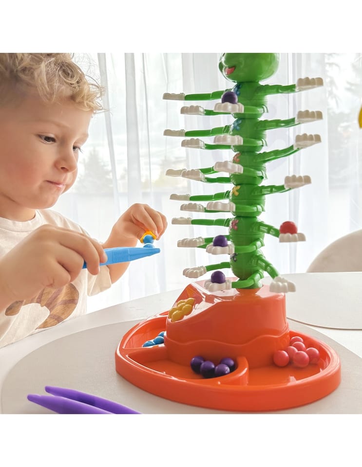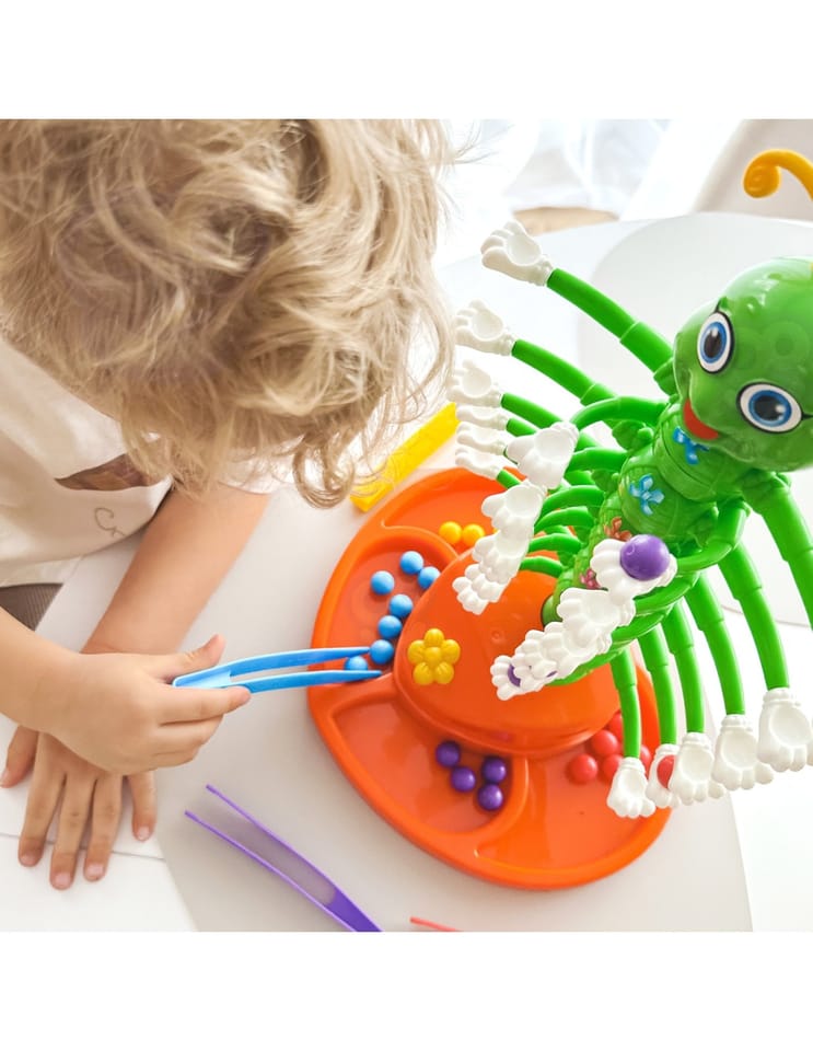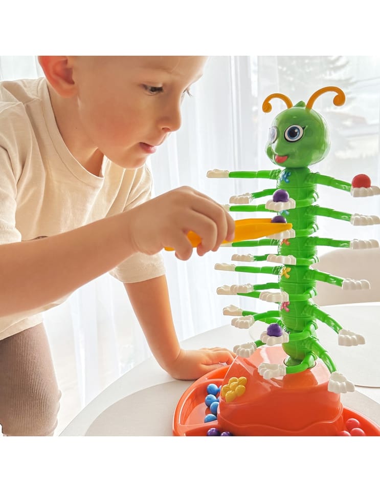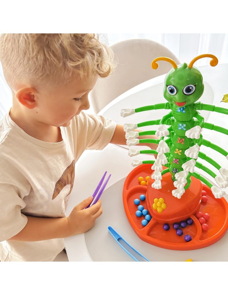 Każdy z graczy wybiera swój kolor pęsety i kuleczek. Gra zaczyna się w momencie włączenia gąsienicy (naciśnięcie żółtego kwiatuszka na podstawie zabawki) i początku jej tańca. Kto pierwszy pozbędzie się swoich kuleczek i ułoży je na ramionach robaczka przy pomocy pęsety, wygrywa rozgrywkę.