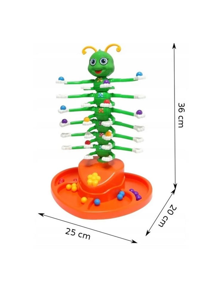 - - Gąsienica porusza się (kołysze) i gra wesołą melodię, co utrudnia ułożenie kulek.