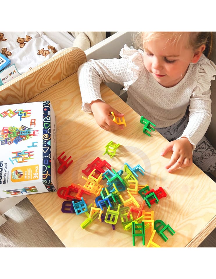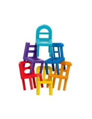 - Krzesełka posiadają różne kształty oraz aż 7 kolorów (niebieski, błękitny, pomarańczowy, żółty, zielony, fioletowy i czerwony).