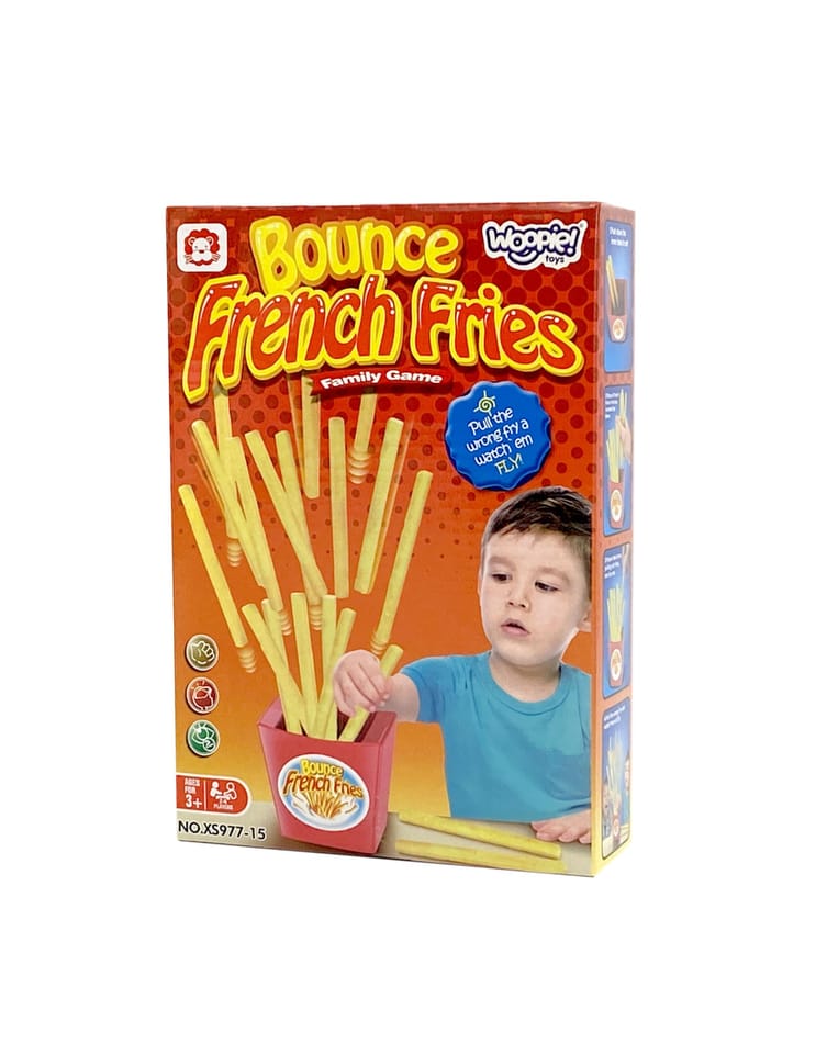 Gra zręcznościowa WOOPIE Wyskakujące Frytki, to gra dla dzieci od 4-ego roku życia. Gra jest bardzo prosta, polega na wyciągnięciu odpowiedniej frytki tak, aby pozostałe nie wyskoczyły z opakowania. Poza mnóstwem rozrywki, poprawia ona zdolności manualne i koordynacyjne dziecka. Zabawka jest lekka i poręczna. Wyskakujące frytki to doskonała rozrywka na wspólne wieczory z rodziną czy z przyjaciółmi.