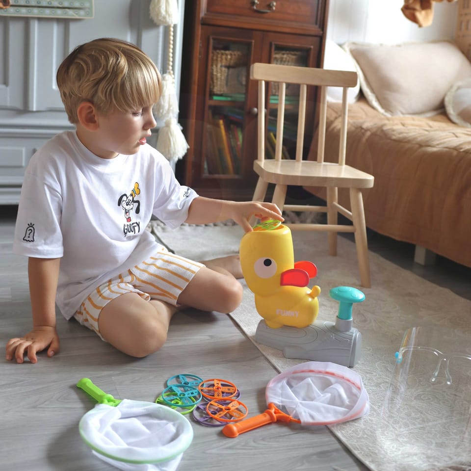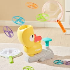 Gra Zręcznościowa Złap Frisbee Kaczka Katapulta od marki WOOPIE to idealna propozycja na wspólną zabawę dla całej rodziny! Gra ta opiera się na zręczności, koncentracji i dobrej koordynacji ruchowej. Zadaniem graczy jest złapanie dysku wyrzucanego przez kaczkę. Im silniej naciśniesz przycisk, tym wyżej wyleci dysk. Dzięki temu gra staje się jeszcze bardziej emocjonująca. Produkt jest idealny zarówno dla dzieci jak i dorosłych. Zabawka jest bezpieczna, zawiera okulary z szybką ochronną, które zabezpieczą oczy i twarz w trakcie zabawy.Charakterystyka: