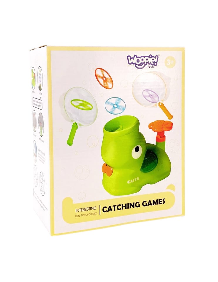 Gra Zręcznościowa Złap Frisbee Słoń Katapulta od marki WOOPIE to idealna propozycja na wspólną zabawę dla całej rodziny! Gra ta opiera się na zręczności, koncentracji i dobrej koordynacji ruchowej. Zadaniem graczy jest złapanie dysku wyrzucanego przez słonika. Im silniej naciśniesz przycisk, tym wyżej wyleci dysk. Dzięki temu gra staje się jeszcze bardziej emocjonująca. Produkt jest idealny zarówno dla dzieci jak i dorosłych. Zabawka jest bezpieczna, zawiera okulary z szybką ochronną, które zabezpieczą oczy i twarz w trakcie zabawy.Charakterystyka: