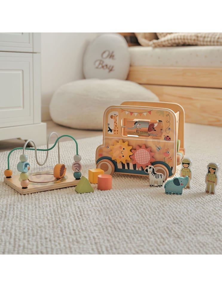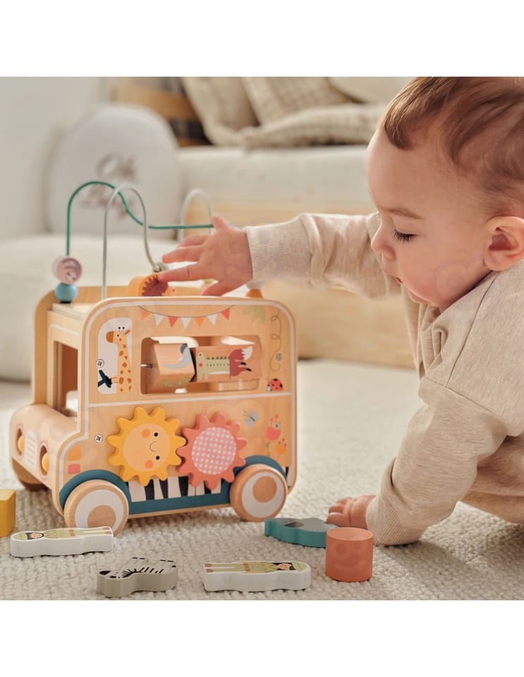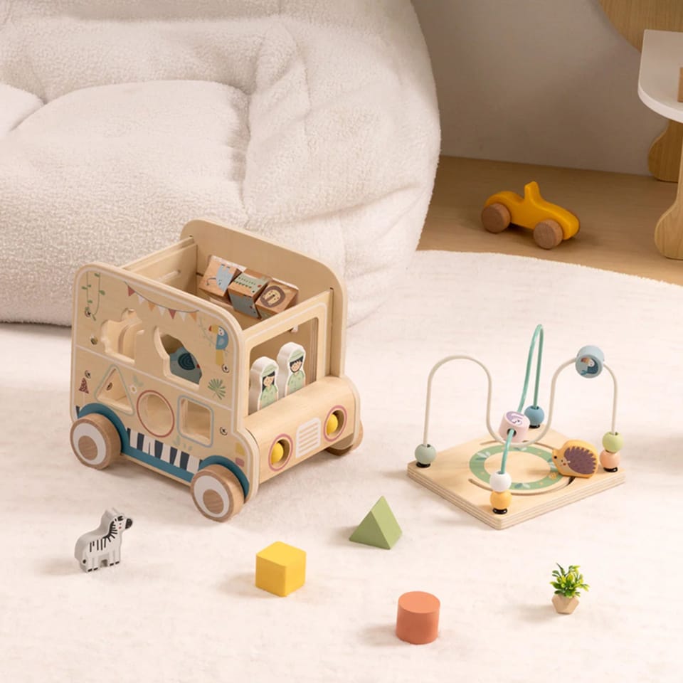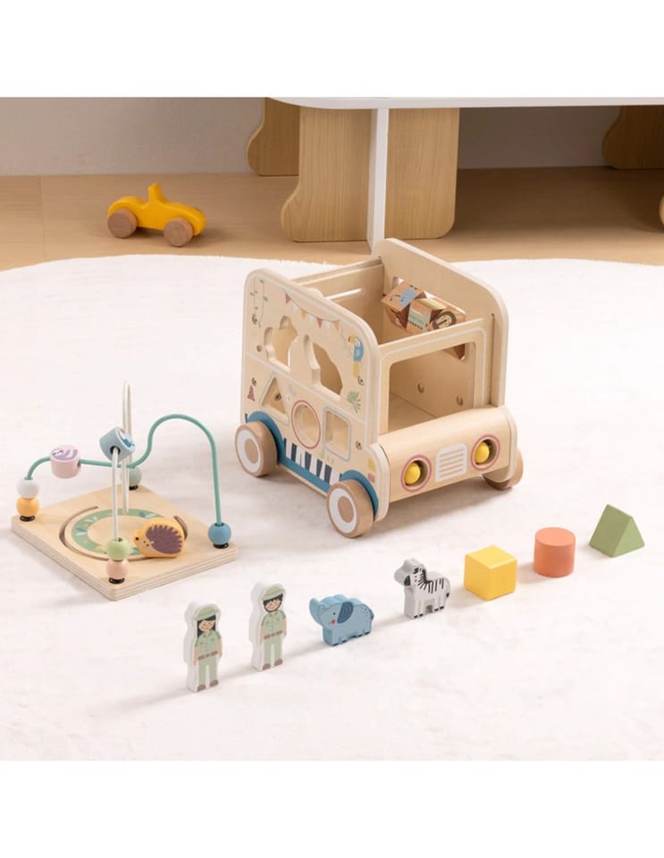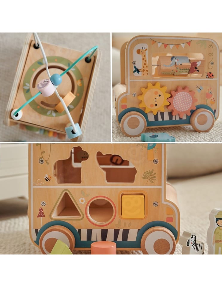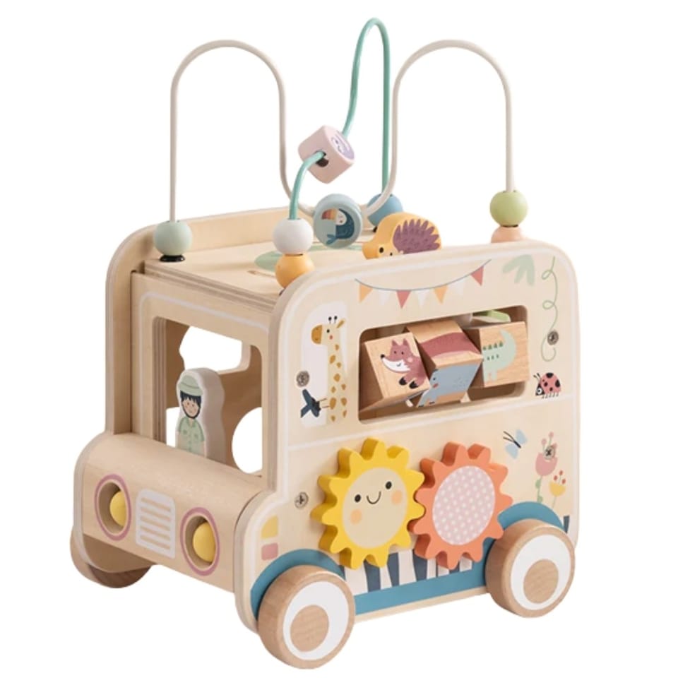 - - Drewniana kostka aktywności o wyjątkowym designie