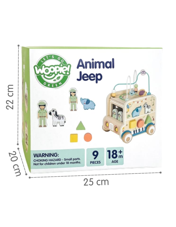 Odkryj świat zabawy z wyjątkową kostką aktywności stylizowaną na radosny samochód terenowy safari marki Woopie Green! Ta wielofunkcyjna, bogato ilustrowana zabawka z licznymi aktywnościami na ściankach przenosi dziecko w świat wyobraźni i niekończącej się przygody. Zachęca do samodzielnego eksperymentowania oraz odkrywania nowych możliwości podczas każdej chwili zabawy, wspierając rozwój dziecka na wielu płaszczyznach.