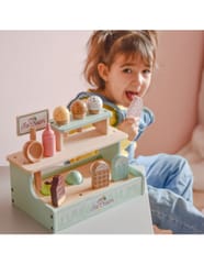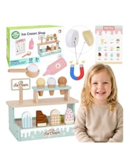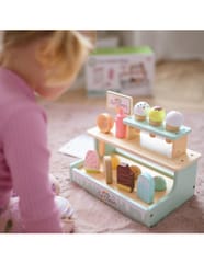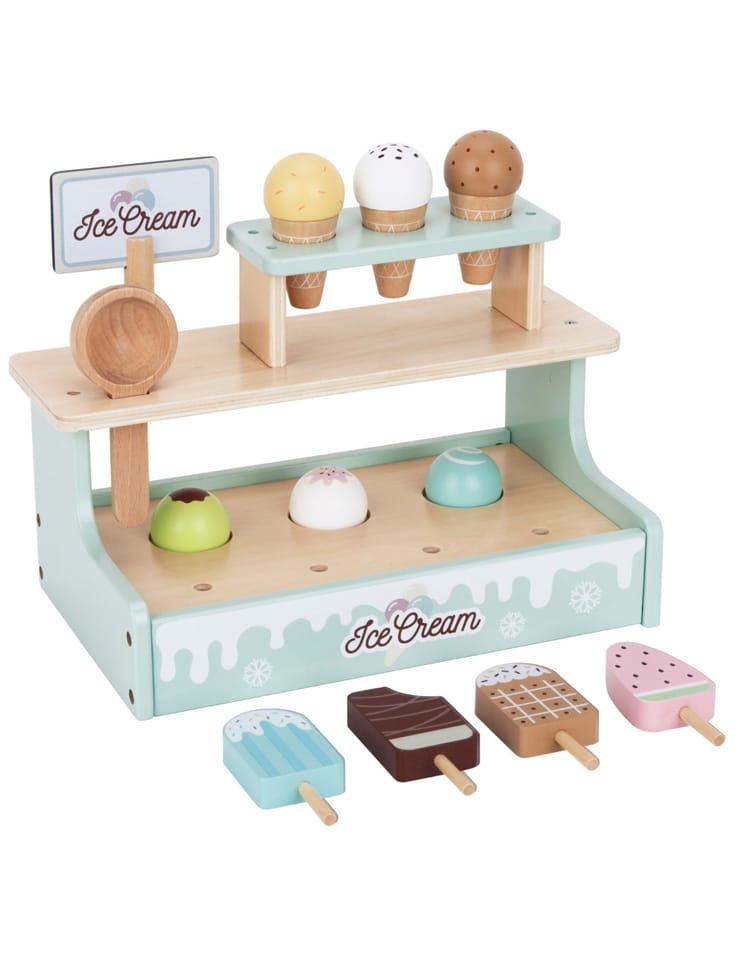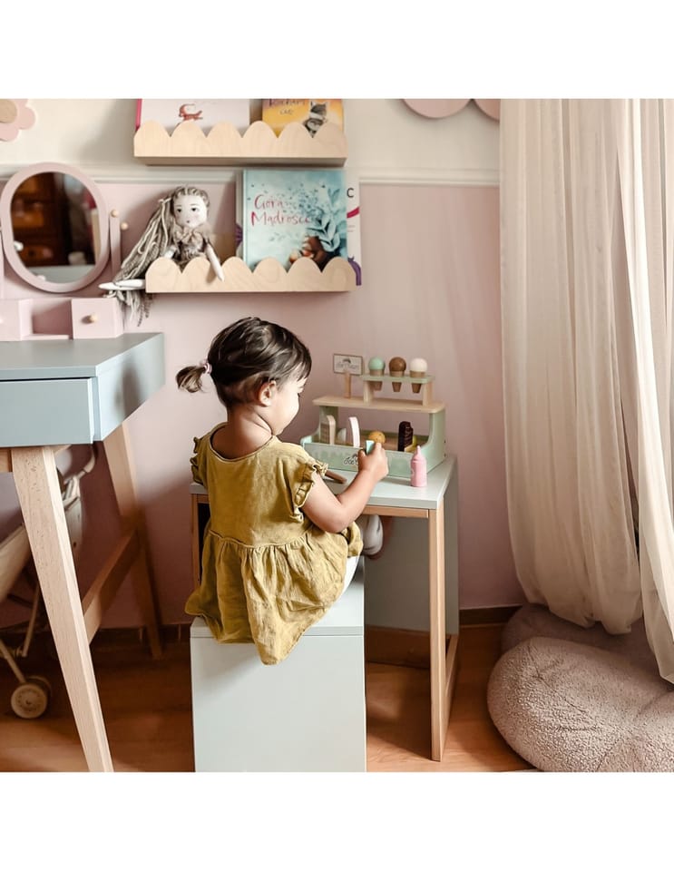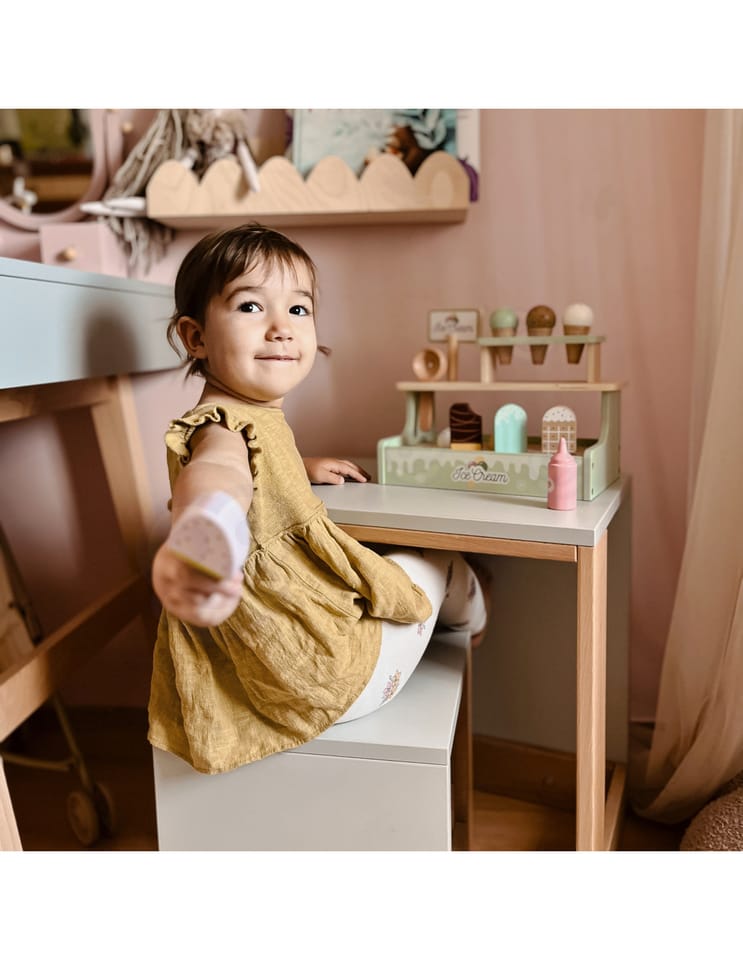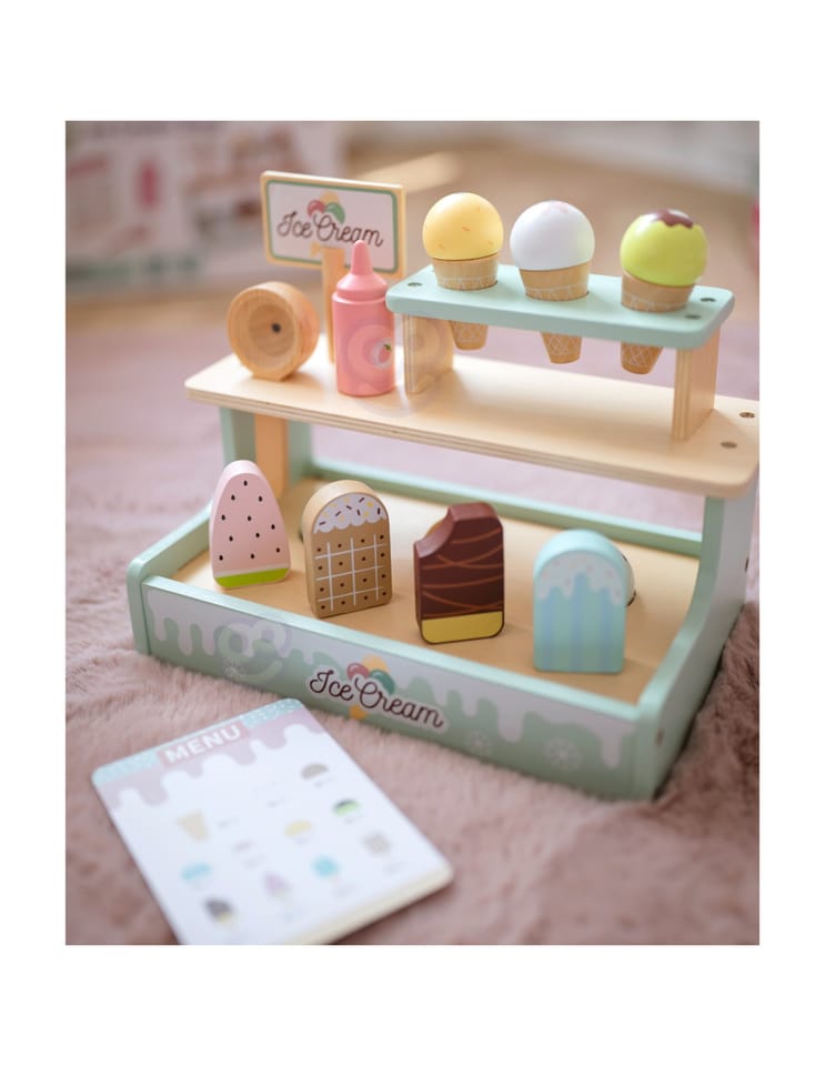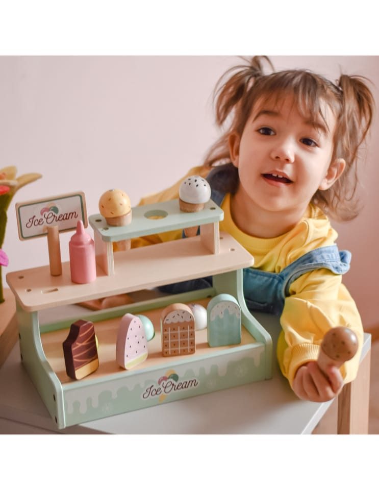 Zostań lodowym mistrzem z uroczym straganem Woopie Green! Ten pastelowy zestaw to wymarzona zabawka dla małych kucharzy i cukierników. Dzieci mogą bawić się w sklepik, serwując pyszne lody z wafelkiem, gałkami i lodami na patyku – wszystko wykonane z bezpiecznego drewna i pięknie pomalowane. Dzięki magnetycznym gałkom i dołączonemu menu maluch może wcielić się w rolę lodziarza i rozwijać wyobraźnię oraz zdolności manualne podczas zabawy.