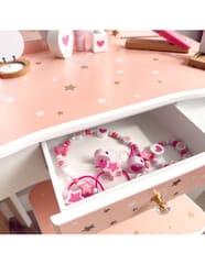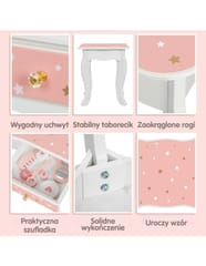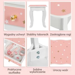 - - Bezpieczne wykończenie – wszystkie krawędzie są zaokrąglone, a farby użyte do malowania toaletki są nietoksyczne i przyjazne dzieciom