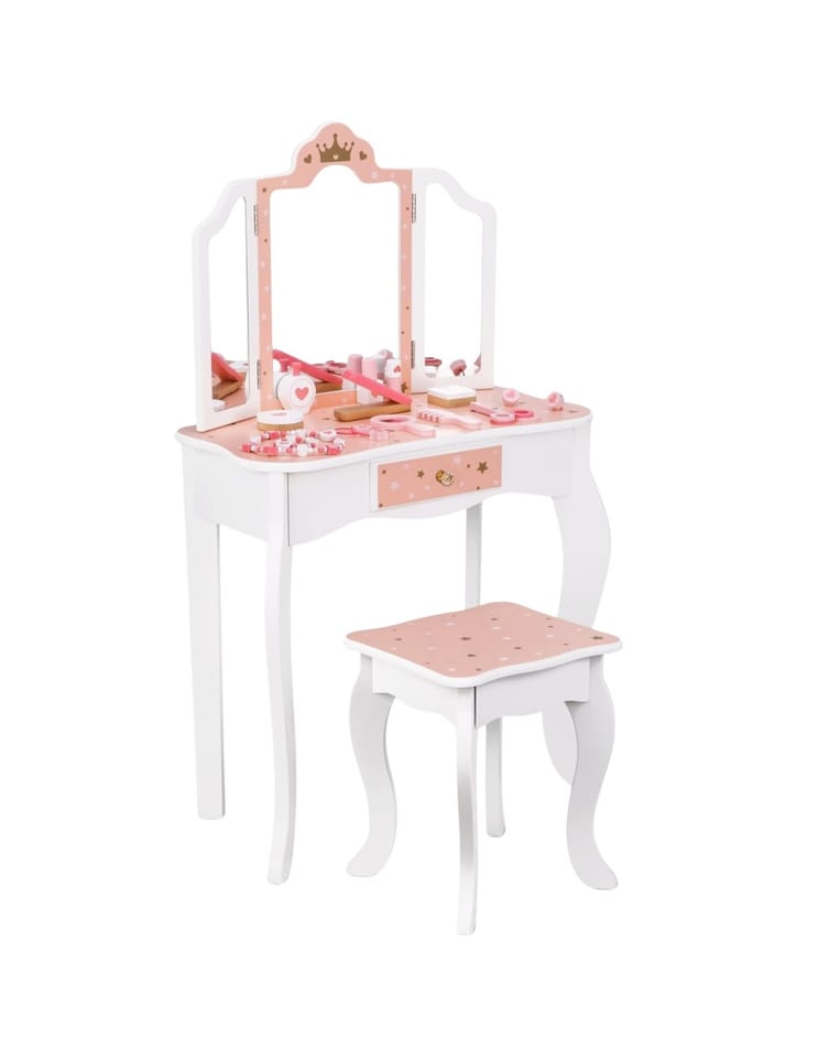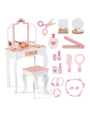 - - Wygodny stołek w zestawie – dopasowany do wysokości toaletki, zapewnia komfort podczas zabawy