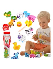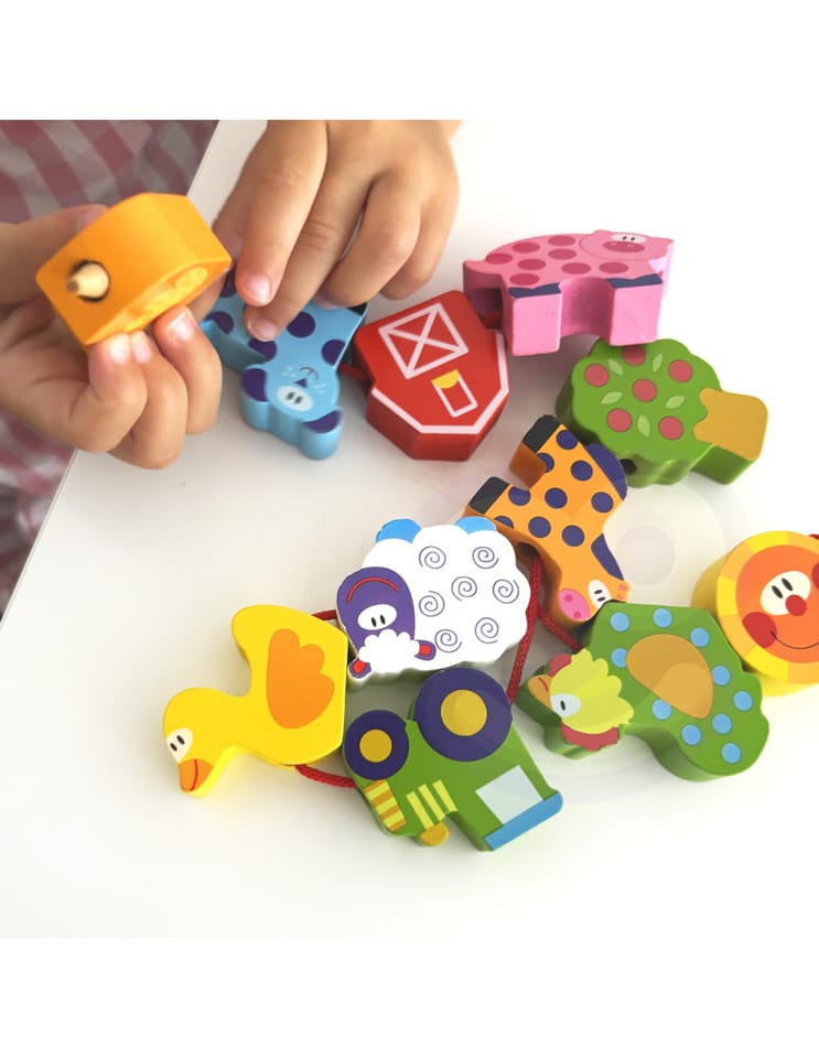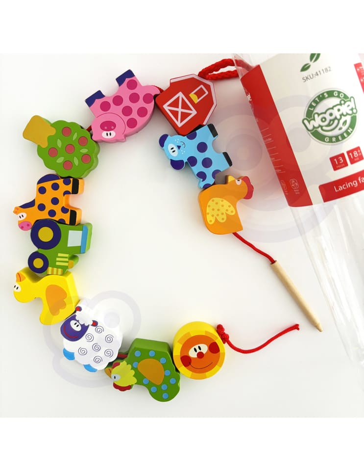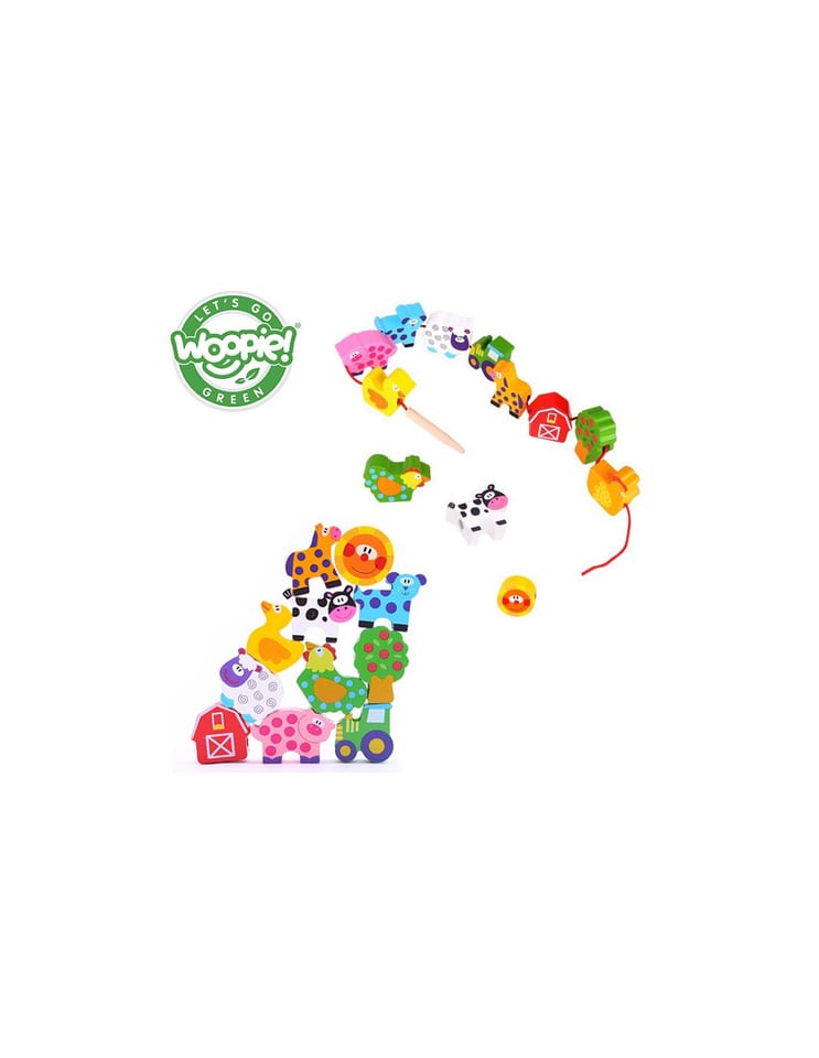 Koraliki Do Nawlekania od marki WOOPIE z serii GREEN to klasyczna przeplatanka w nowoczesnym, edukacyjnym wydaniu. Motyw farmy, w tym urocze zwierzątka i elementy wiejskiego życia, pobudza wyobraźnię i zachęca do kreatywnej zabawy. Dziecko nawleka drewniane elementy na sznureczek, ćwicząc przy tym zręczność, koncentrację i cierpliwość. Naturalne drewno i ekologiczne wykonanie czynią zabawkę bezpieczną i przyjazną środowisku.