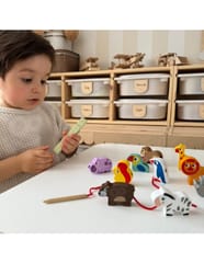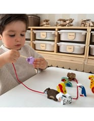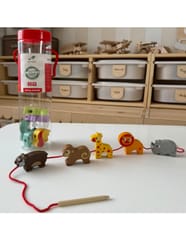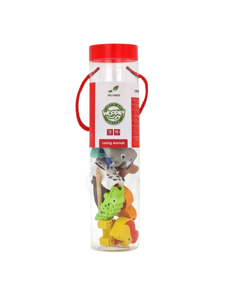 Poznaj wyjątkową przeplatankę od marki WOOPIE z serii GREEN – to nie tylko klasyczna nawlekanka, ale prawdziwa przygoda w świecie dzikich zwierząt! Zestaw utrzymany w motywie ZOO Safari pozwala dzieciom już od 18 miesiąca życia ćwiczyć zdolności manualne, ucząc jednocześnie cierpliwości i precyzji. Dziecko ma za zadanie nawlekać drewniane koraliki z otworami na dołączony sznureczek. Każdy klocek przedstawia inne zwierzątko lub element safari – od wesołej małpki po majestatycznego lwa! To doskonała okazja, by rozwijać nie tylko motorykę małą, ale i zainteresowanie światem przyrody.