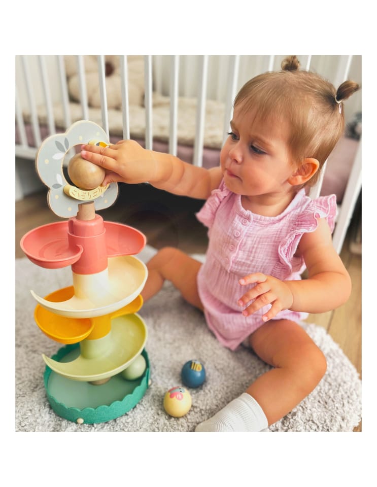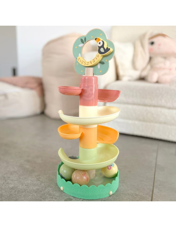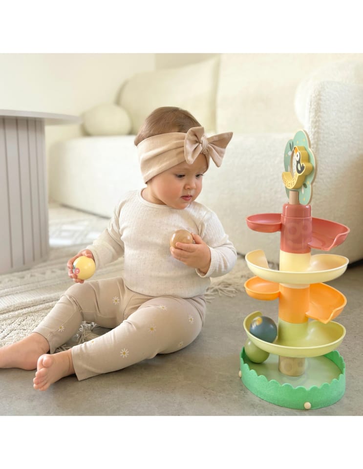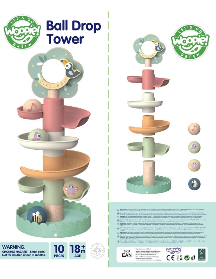 Drewniany kulodrom od marki WOOPIE GREEN to idealna zabawka sensoryczna i edukacyjna dla maluchów od 18 miesiąca życia. Spiralna wieża składająca się z 6 kolorowych, łatwych do złożenia elementów, pozwala dzieciom budować swój własny tor kulkowy. Do zestawu dołączone 4 lekkie kulki z nadrukami zwierzątek i nutek, które dzieci mogą obserwować podczas toczenia się w dół – to nie tylko frajda, ale też doskonałe ćwiczenie dla wzroku i rączek. Motyw lasu pobudza wyobraźnię i zachęca do samodzielnej zabawy, a naturalne drewno i bezpieczne materiały gwarantują jakość oraz trwałość
