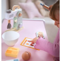 - - Zdolności manualne – Drewniany Mikser angażuje dziecko w manipulowanie różnymi elementami, takimi jak ruchome funkcjami zabawki oraz wałkiem. Każda z tych czynności wymaga precyzyjnego chwytania, układania i przesuwania przedmiotów i obracania, co pozytywnie wpływa na rozwój motoryki małej. Zdolności manualne dziecka są regularnie ćwiczone poprzez różnorodne działania związane z obsługą zestawu.