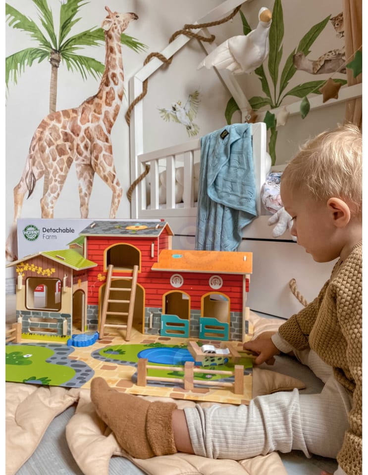 Poznaj zestaw “Mega Farma” od marki WOOPIE GREEN! To wyjątkowa zabawka, która przenosi dzieci w świat wiejskiego gospodarstwa, pełen zwierząt i codziennych obowiązków. Zestaw składa się z 18 elementów, w tym budynków takich jak stajnia, obora i kurnik — idealny do odgrywania ról i kreatywnej zabawy. Przeznaczony dla dzieci od 3 roku życia, wykonany z drewna, wspiera rozwój manualny i wyobraźnię. Dzięki realistycznym detalom maluch może samodzielnie zorganizować farmę, opiekować się zwierzątkami i poznawać przyrodę. To świetna propozycja zarówno na samotną zabawę, jak i wspólne momenty z rodziną.