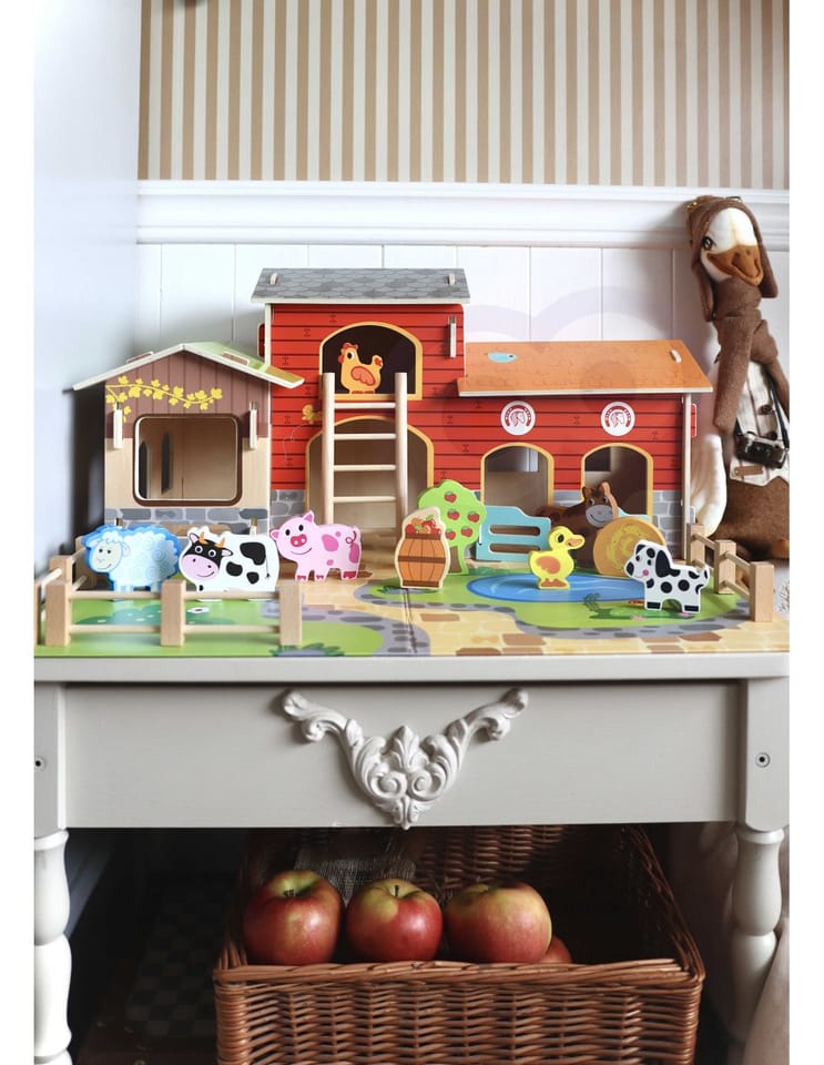 - - Plac z oczkiem wodnym, drzewko, sianko oraz inne akcesoria farmy.