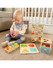Drewniany Box Montessori 6w1 od marki Woopie Green to wszechstronny zestaw zaprojektowany specjalnie dla dzieci w wieku ok. 13–15 miesięcy. W jednym pudełku znajdziesz aż 6 różnych zabawek sensorycznych, które bawią i uczą jednocześnie. Każda zabawka wspiera rozwój motoryczny, poznawczy i sensoryczny malucha. Dzięki metodzie Montessori dziecko może samodzielnie eksperymentować, dopasowywać kształty, uczyć się przyczyn i skutków, a rodzic dostaje narzędzie do wartościowej zabawy. To praktyczny zestaw, który zapewnia długi czas używania i stanowi świetny pomysł na prezent.