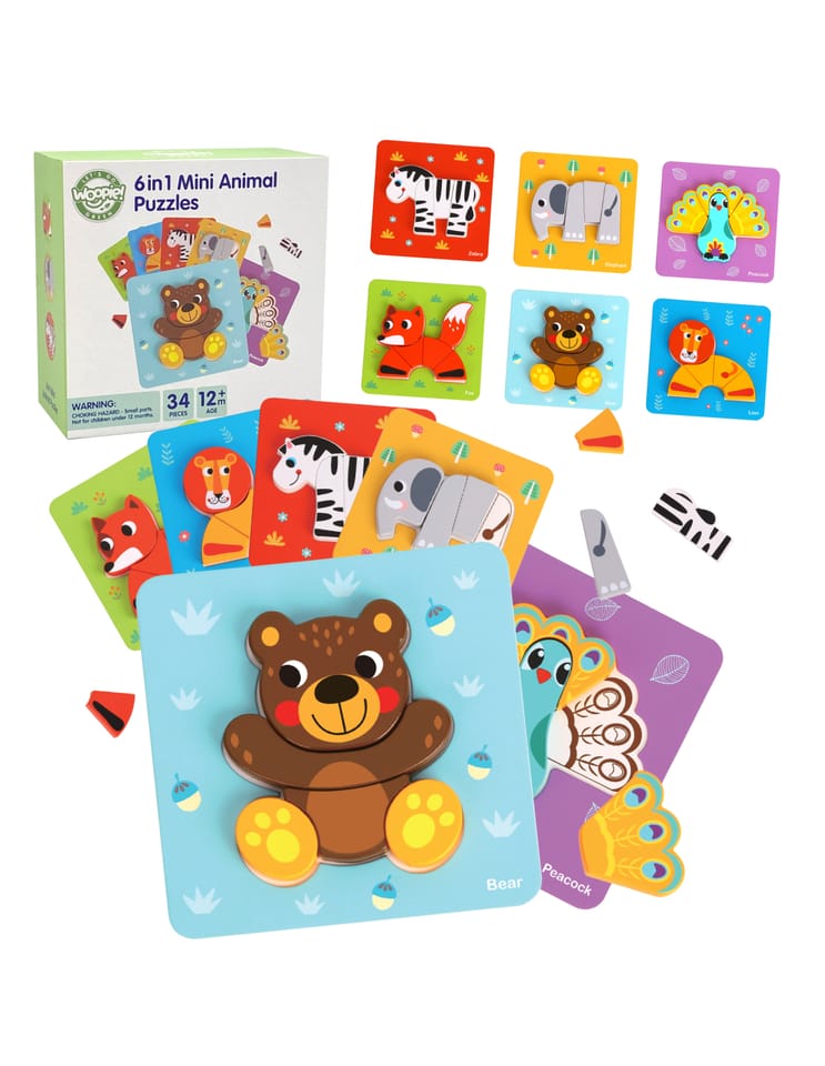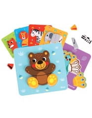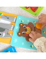 Drewniana układanka ze zwierzątkami to wyjątkowy zestaw edukacyjny, który w przemyślany sposób łączy swobodną zabawę z nauką. Głównym zadaniem malucha jest dopasowywanie dużych, drewnianych klocków do odpowiadających im miejsc na przygotowanych planszach. Specjalnie zaprojektowane wgłębienia na kartach skutecznie zapobiegają przesuwaniu się elementów, co ułatwia układanie obrazków i nie zniechęca dziecka, jednocześnie świetnie wspierając naukę precyzji.