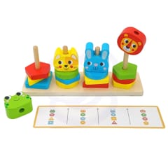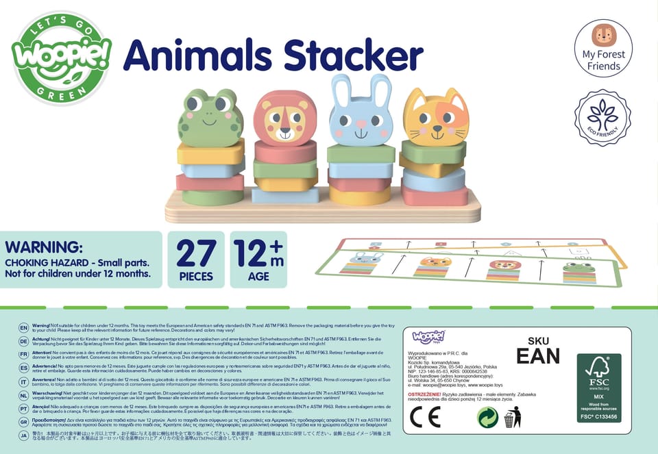 Układanka Montessori od marki WOOPIE z serii GREEN to wyjątkowa, edukacyjna zabawka, która stymuluje wszechstronny rozwój dziecka poprzez kreatywną i angażującą zabawę. W zestawie znajduje się 27 elementów, w tym kolorowe klocki o różnych kształtach oraz urocze figurki zwierzątek, które można układać na różne sposoby, kierując się wzorami z dołączonych kart lub własną wyobraźnią. Zabawę można urozmaicić o grę w zapamiętywanie i odtwarzanie z pamięci obrazka przez malucha. Dziecko może również wymyślić swój własny układ - ogranicza tylko kreatywność i wyobraźnia. Same klocki są doskonałą pomocą do przyszłej nauki kształtów i kolorów. Sorter rozwija zdolności manualne, logiczne myślenie, wyobraźnie i kreatywność, koncentracje oraz zapamiętywanie.