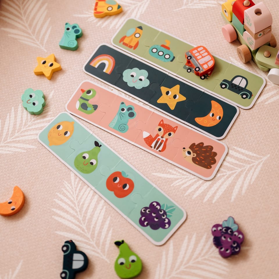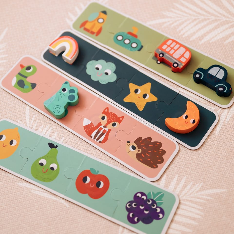 - - Łączy grę Memory, układankę i ćwiczenie sensoryczne.