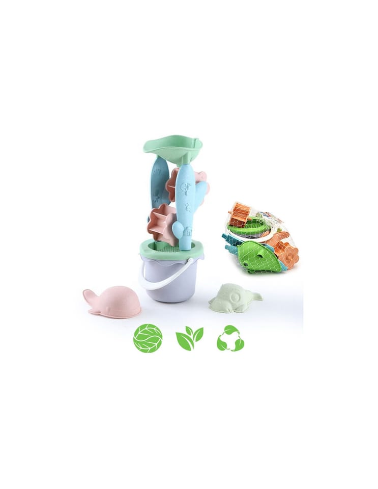 Zestaw do Piasku z Wiaderkiem i Kołowrotkiem od marki WOOPIE z serii GREEN to świetny dodatek do piaskownicy, a nawet ogrodu. Zestaw zawiera 4 elementów: wiaderko, kołowrotek 2 foremki. Wiaderko ma wygodny uchwyt do przenoszenia. Zestaw ma najmodniejszy pastelowy design oraz został wykonany z organicznego i biodegradowalnego (podlegającemu samoistnemu rozkładowi) materiału. Dodatkowo podlega kompostowaniu. Produkt bezpieczny dla dzieci - dezynfekowany w 120 stopniach. Gwarancja super zabawy w piaskownicy, na plaży, a nawet w ogrodzie! Produkt przyjazny środowisku!
