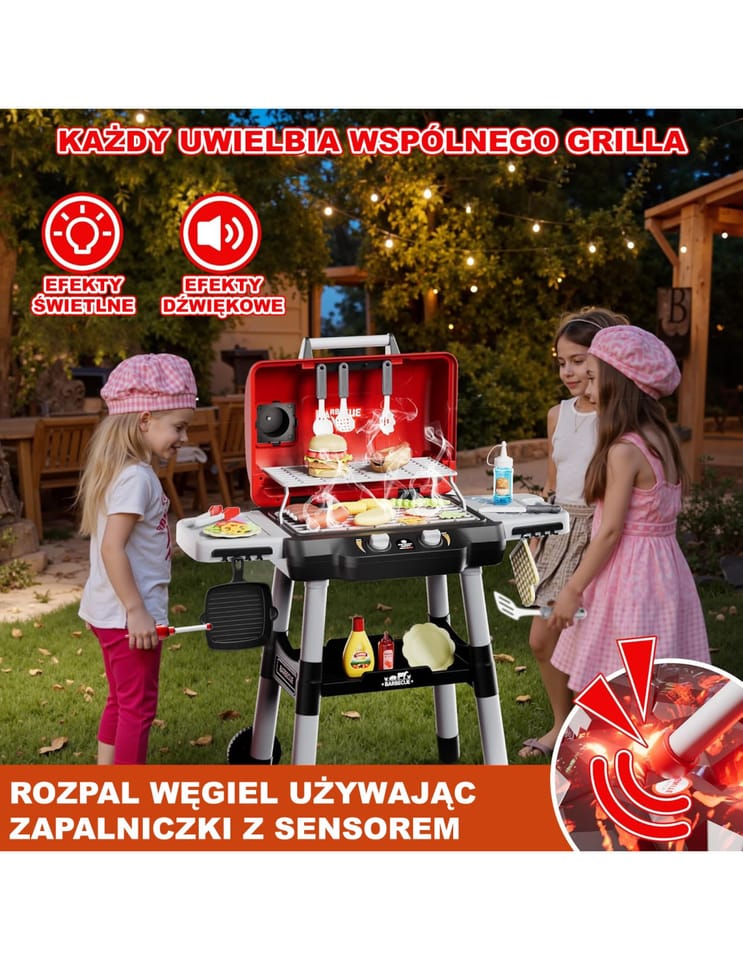 - - Realistyczny grill z efektami świetlnymi, dźwiękowymi oraz parą, imitują prawdziwe grillowanie