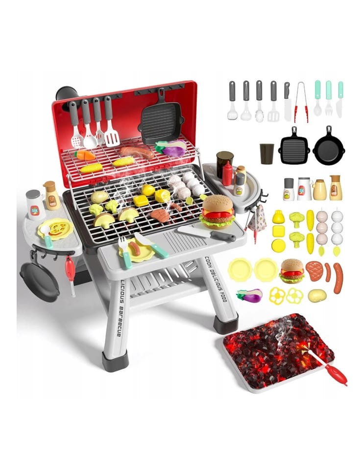 Przenieś zabawę na świeże powietrze i pozwól swojemu dziecku poczuć się jak prawdziwy mistrz grillowania. Grill Barbecue marki Woopie to wyjątkowy, interaktywny zestaw kuchenny, który zapewnia niesamowicie realistyczne doznania dzięki efektom pary wodnej oraz światła LED. Dziecko może obserwować bezpieczny dym unoszący się znad rusztu, co sprawia, że zabawa w gotowanie staje się jeszcze bardziej autentyczna i fascynująca. Zestaw został wyposażony w bogaty pakiet akcesoriów, w tym kolorowe warzywa, imitacje mięsa oraz niezbędne narzędzia kucharza. Dzięki stabilnej konstrukcji i prostej obsłudze, zabawka idealnie sprawdzi się zarówno w domu, jak i w ogrodzie. Wykonanie z wysokiej jakości, bezpiecznych materiałów gwarantuje trwałość oraz pełen komfort podczas codziennych przygód kulinarnych małego szefa kuchni.