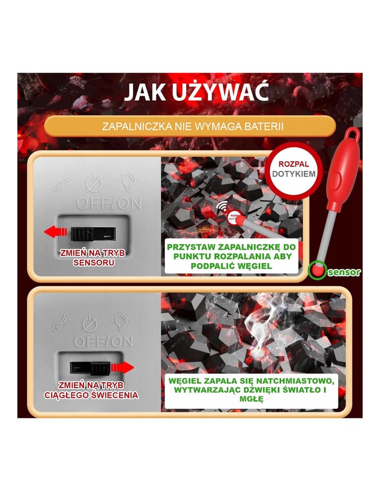 - - Grill emituje realistyczny efekt dymu (pary wodnej) oraz światło, imitując gorący żar