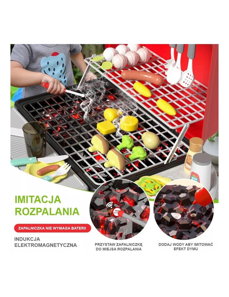 - - Posiada otwierany ruszt z pokrywą, co urozmaica zabawę w przygotowywanie potraw