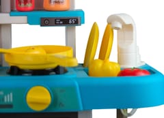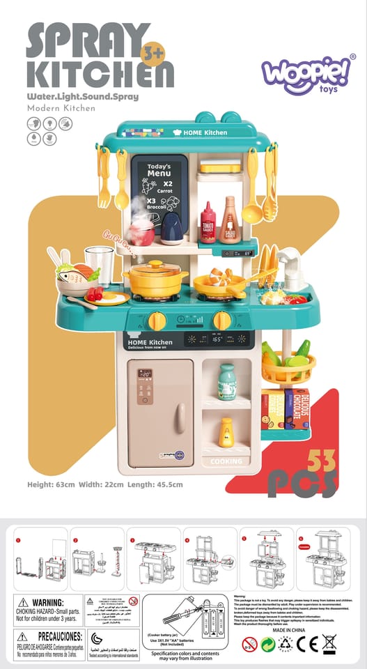 Rewelacyjna Kuchenka dla dzieci od marki WOOPIE to świetna i kreatywna zabawa dla twojego dziecka. Dzięki super odwzorowanym detalom, twoje dziecko poczuje się jakby naprawdę gotowało! Nasza kuchnia została wyposażona w funkcjonalny kran, z którego może lecieć prawdziwa woda. Dzięki obiegowi zamkniętemu, woda wróci do zlewu, umożliwiając dziecku zabawę w mycie warzyw, owoców, naczyń, czy nawet małych rączek. Z dwoma pokrętłami sterującymi palnikami, nasza kuchnia ożywa świetlnie i dźwiękowo. Pierwsze pokrętło włącza pierwszy palnik, rozbłyskując światłem, a drugie pokrętło aktywuje drugi palnik, towarzysząc temu migoczącym światłom i dźwiękom smażenia. Dodatkowo z pokrywki garnka wydobywa się para wodna, jak podczas prawdziwego gotowania! To nie tylko zabawka – to interaktywne narzędzie edukacyjne, które pozytywnie wpływa na rozwój wyobraźni i pobudza kreatywność dziecka.