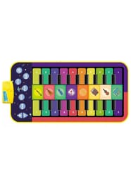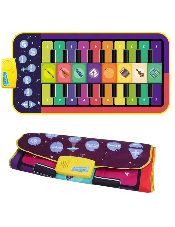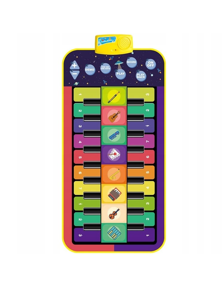 - - Na macie znajduje się 10 klawiszy pianina oraz ikony 8 różnych instrumentów, które można aktywować, tworząc unikalne kompozycje dźwiękowe. To zabawka, która zachęca do odkrywania muzycznych zdolności.
