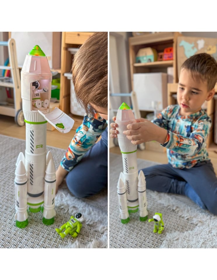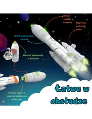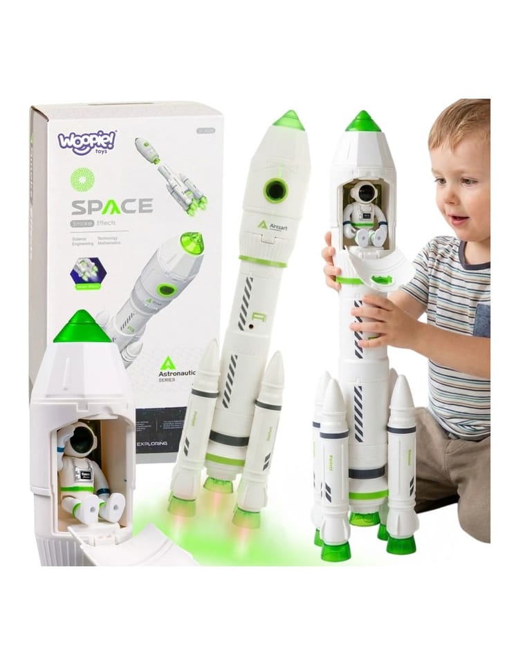 Otwórz przed swoim dzieckiem drzwi do niesamowitej galaktycznej przygody z niezwykle zaawansowaną, a jednocześnie łatwą w obsłudze Rakietą Kosmiczną od Woopie! To nie jest zwykła zabawka — to kompletna, interaktywna misja kosmiczna, która angażuje zmysły, pobudza wyobraźnię i uczy poprzez zabawę. Produkt został stworzony z myślą o małych odkrywcach, którzy marzą o podboju kosmosu. Dzięki licznym funkcjom, realistycznym efektom świetlnych, dźwiękowych i szczegółowej konstrukcji, dziecko może samodzielnie przygotować statek do startu, umieścić astronautę w kapsule, uruchomić odliczanie i... odpalić silniki! Po napełnieniu rakiety zwykłą wodą z kranu i wciśnięciu przycisku, zabawka symuluje prawdziwy start: świecące silniki, realistyczne dźwięki odliczania oraz widowiskowy efekt dymu sprawiają, że cała scena wygląda niczym startujący wahadłowiec NASA! Interaktywna konsola na rakiecie uruchamia odliczanie i zapala kabinę pilota, dając dziecku pełne wrażenie, że naprawdę kontroluje misję kosmiczną. Rakieta posiada również odczepianą kapsułę z otwieraną kabiną, w której mieści się figurka astronauty. Kabinę można łatwo połączyć z rakietą lub oddzielić za pomocą prostego obrotu – to idealne rozwiązanie do zabawy w lądowanie na obcej planecie lub awaryjne powroty na Ziemię. Wszystkie moduły zostały zaprojektowane z myślą o łatwej obsłudze przez dzieci, a jednocześnie oferują wiele możliwości kreatywnej zabawy. To doskonały prezent na urodziny, święta lub każdą inną okazję, który zachwyci każdego małego fana kosmosu technologii i futurystycznych przygód. Daj dziecku zabawkę, która nie tylko bawi, ale także rozwija!