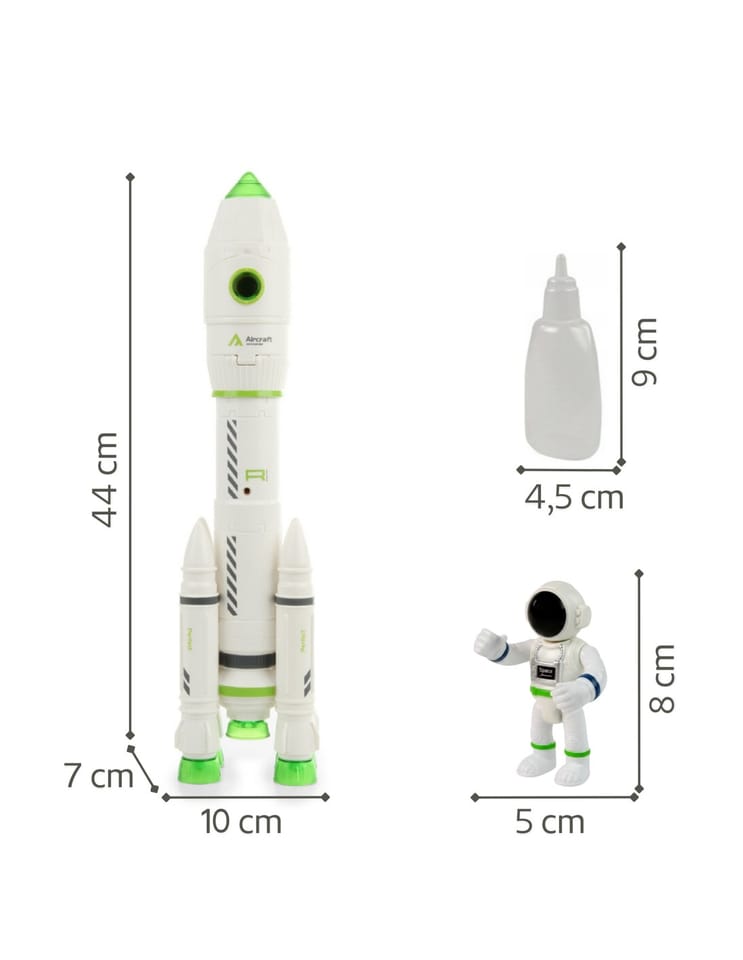 - - Symulacja dymu – wystarczy wlać wodę z kranu, a rakieta wypuszcza mgłę jak przy prawdziwym starcie