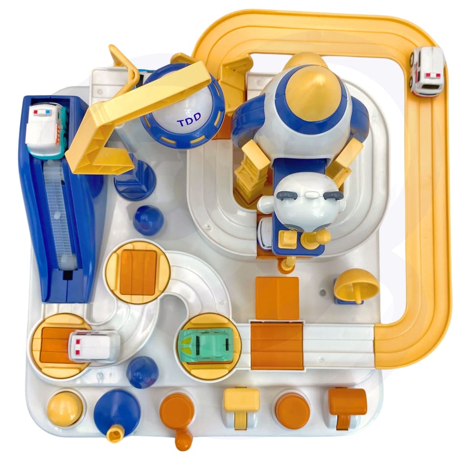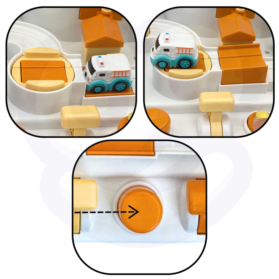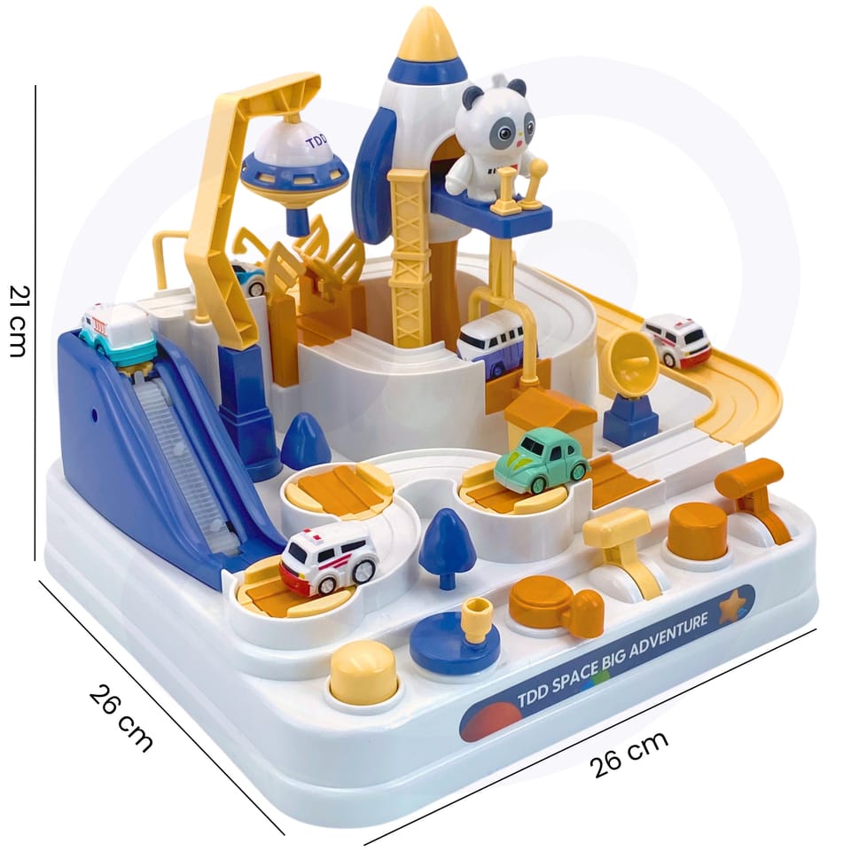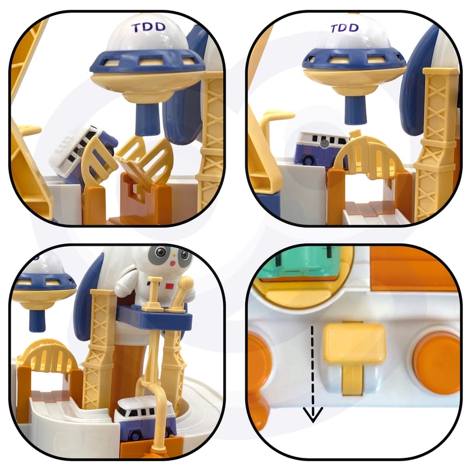 - Zabawka od 3 roku życia- Zaprojektowany na wzór bazy kosmicznej, z elementami takimi jak statki kosmiczne i pojazd UFO- Ruchome elementy - sterujemy nimi używając odpowiednich guzików i obracając odpowiednie pokrętła- Autka przenoszone "w powietrzu" dzięki magnesowi - Dzieci muszą planować swoje działania i podejmować decyzje, jak pokonać różne przeszkody na trasie- Aby tor działał, nie potrzebne są baterie