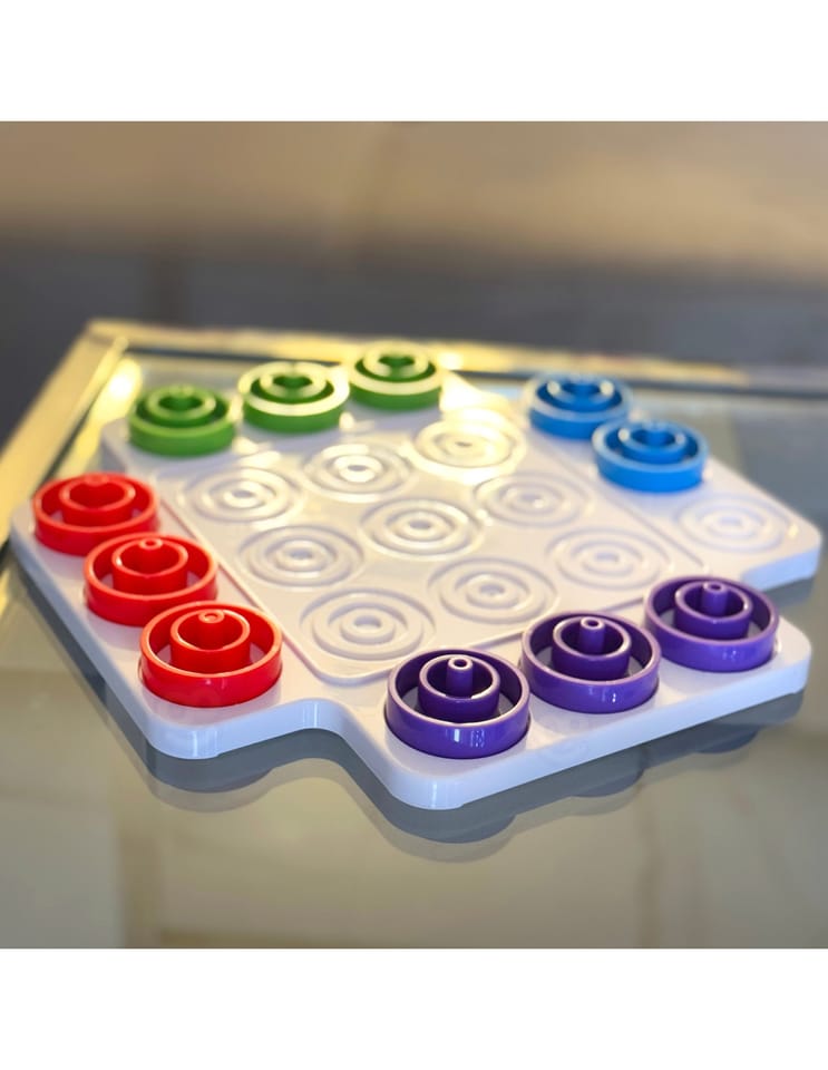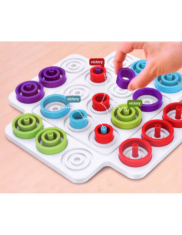 - Aby wygrać, należy ułożyć w jednej linii (pionowo, poziomo lub ukośnie): Trzy pionki tego samego koloru w kolejności: - Od największego do najmniejszego - Pionki tej samej wielkości - Od największego do najmniejszego