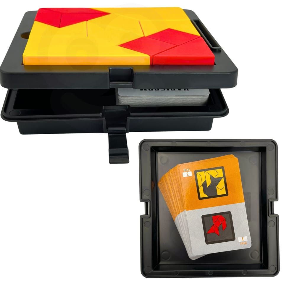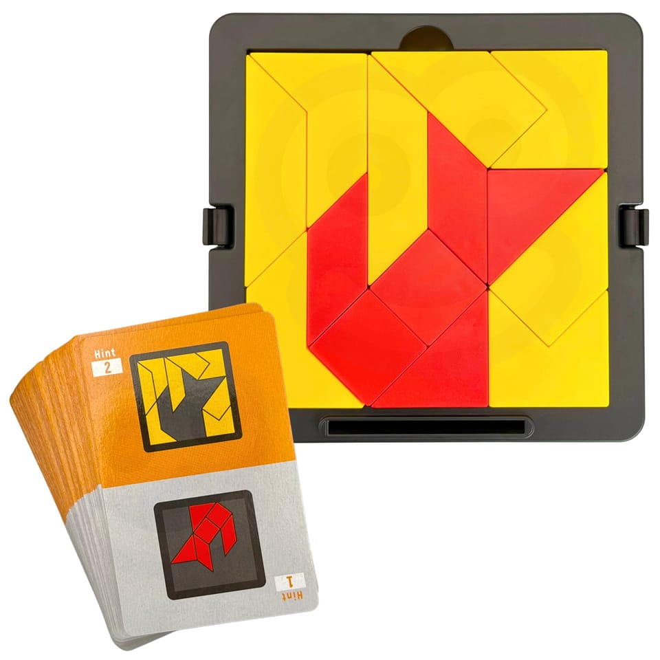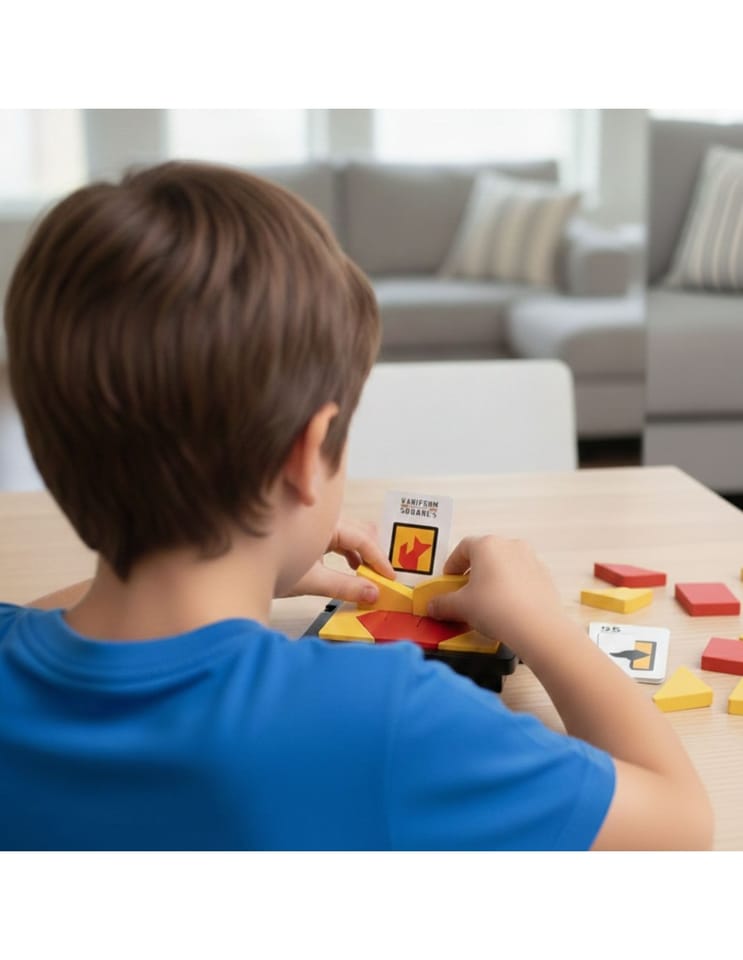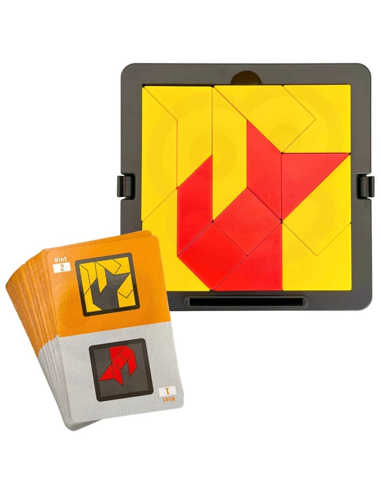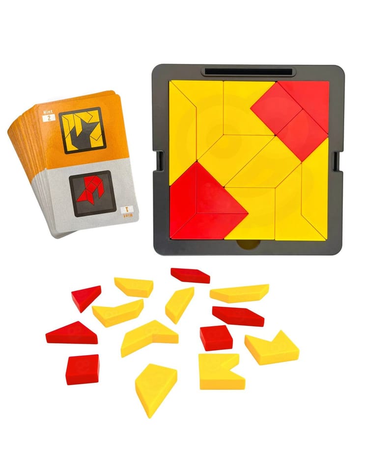 Tangram Gra Logiczna Kieszonkowa od firmy WOOPIE to gra, która pozwala rozwijać umiejętności spostrzegawcze jak i kreatywne. Celem gry jest ułożenie z dostępnych elementów określonych wzorów przedstawionych na kartach. Gracz musi dopasować klocki tak, aby odwzorować wzory, nie pozostawiając pustych miejsc ani nie nakładając elementów na siebie. Dziecko dzięki różnym drewnianym klockom może układać wiele wzorów, każdy w coraz to cięższej kategorii. Przez co może ono rozwijać wyobraźnie i ćwiczyć logiczne myślenie.Ta gra jest również ćwicząca pamięć dzięki dolnej szufladce, której można schować karty. Jest to gra dla osób w każdym wieku ! Przez jej kompaktową wielkości może posłużyć jako rozrywka podczas podróży jak i w domu. Idealna na prezent dla każdego.